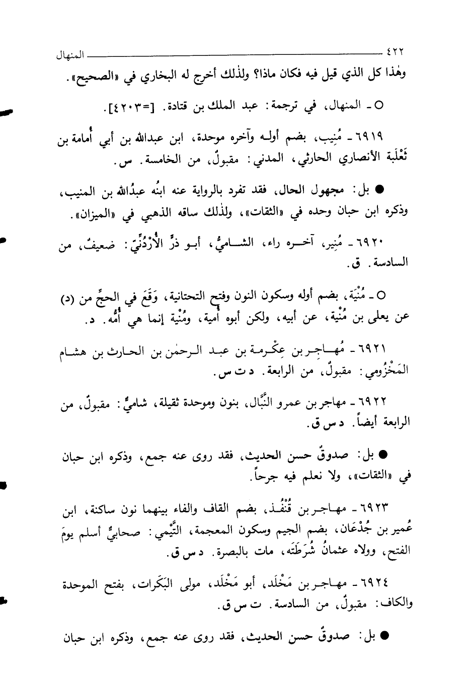 ° - المنهال، في ترجمة: عبد الملك بن قتادة. [=4203].
