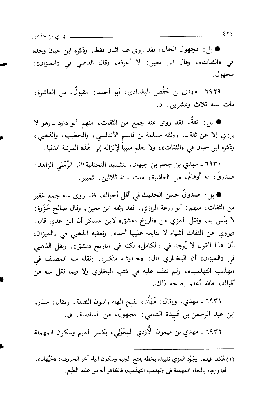 6929 - مهدي بن حَفْص البغدادي، أبو أحمدَ: مقبولٌ، من العاشرة، مات سنة ثلاث وعشرين. د.
