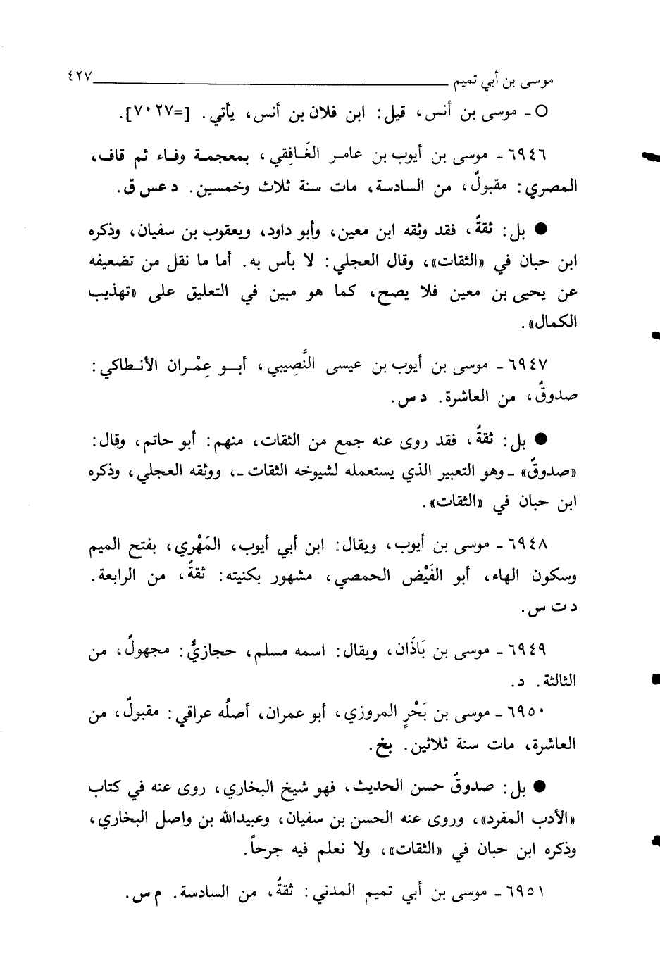 6947 - موسى بن أيوب بن عيسى النَّصِيبي، أبو عِمْران الأنطاكي: صدوقٌ، من العاشرة. دس.