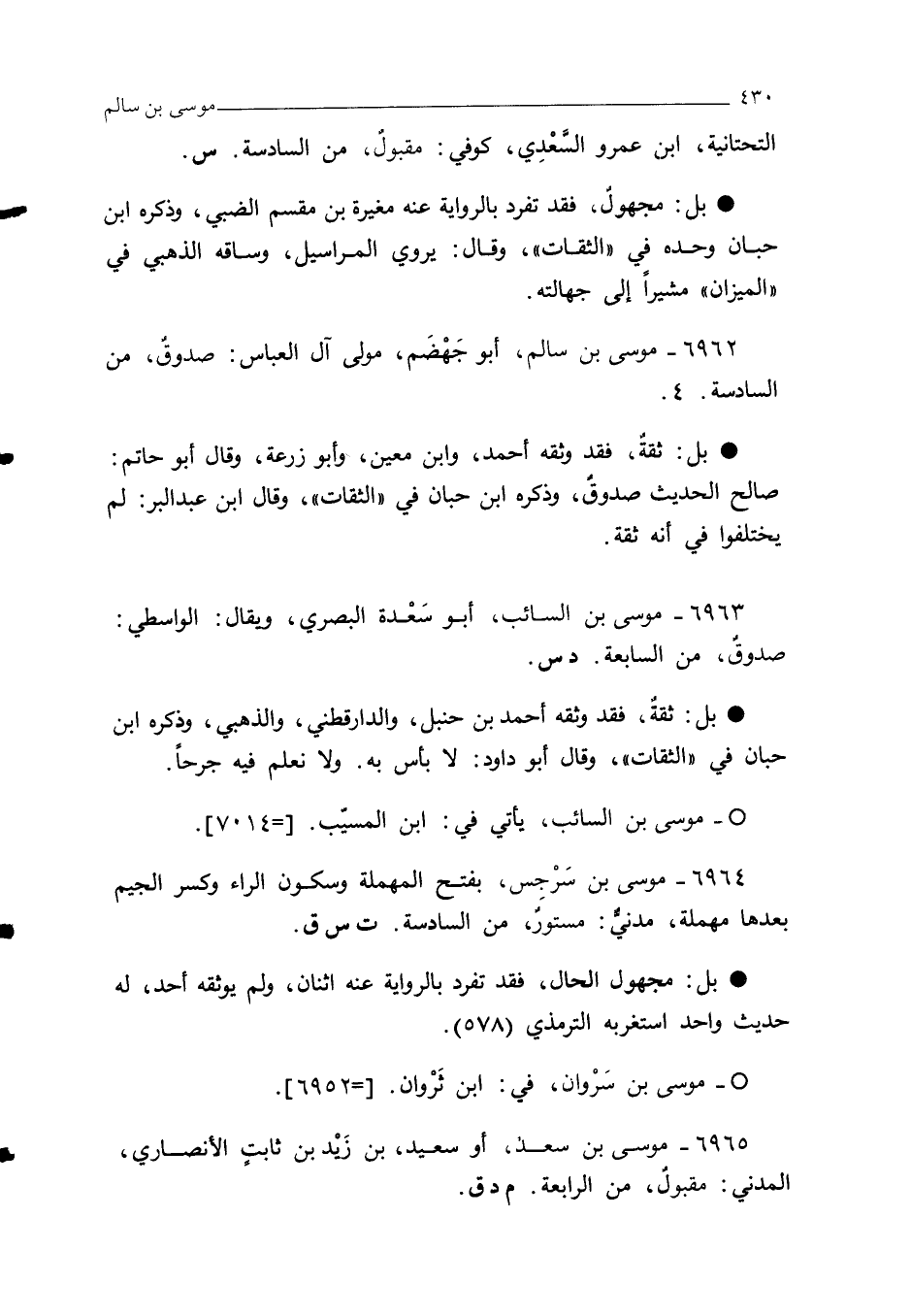 6962 - موسى بن سالم، أبو جَهْضَم، مولى آل العباس: صدوقٌ، من السادسة. 4.