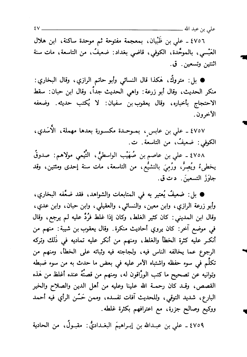 4759 - علي بن عبد الله بن إبراهيمَ البغداديُّ: مقبولٌ، من الحادية
