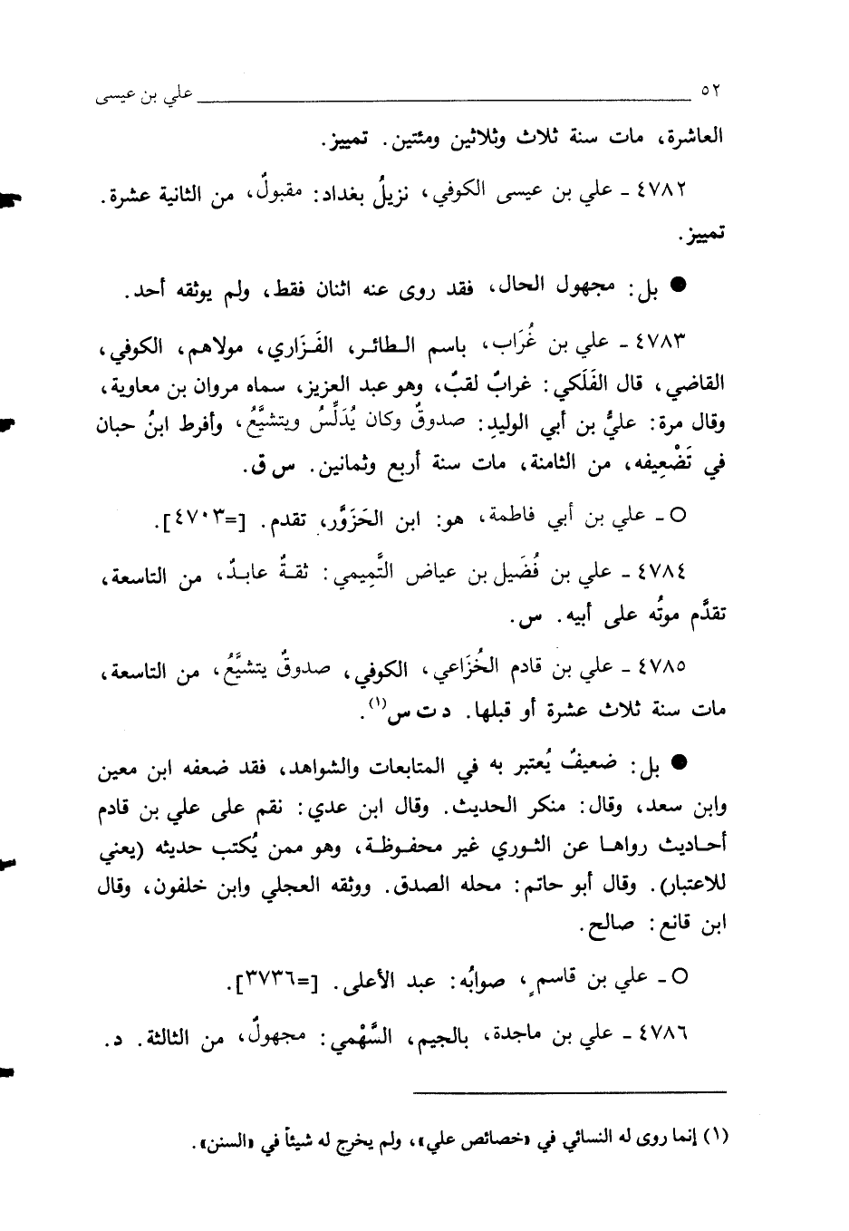 4782 - علي بن عيسى الكوفي، نزيلُ بغداد: مقبولٌ، من الثانية عشرة. تمييز.