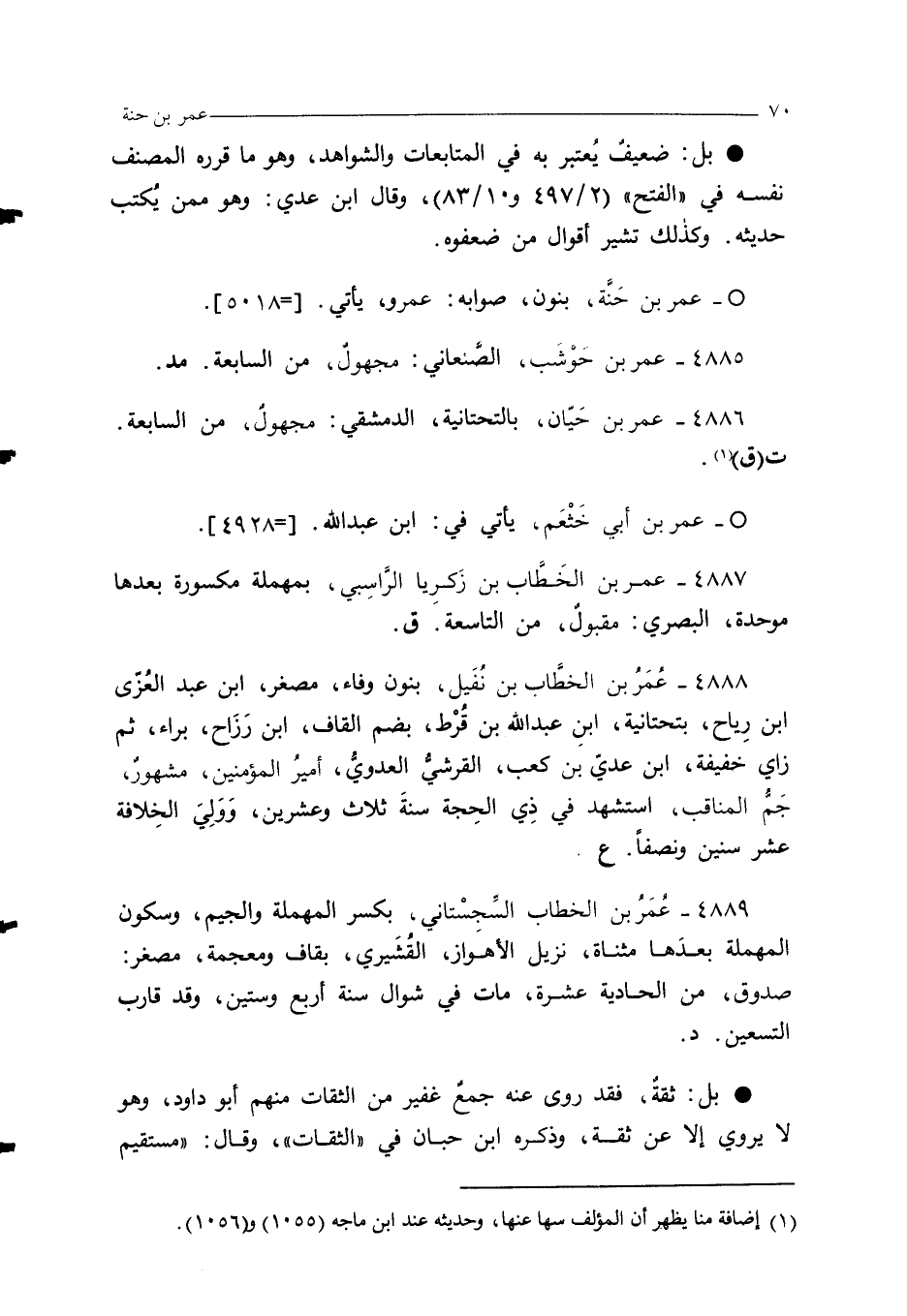 ° - عمر بن حَنَّة، بنون، صوابه: عمرو، يأتي. [=5018].