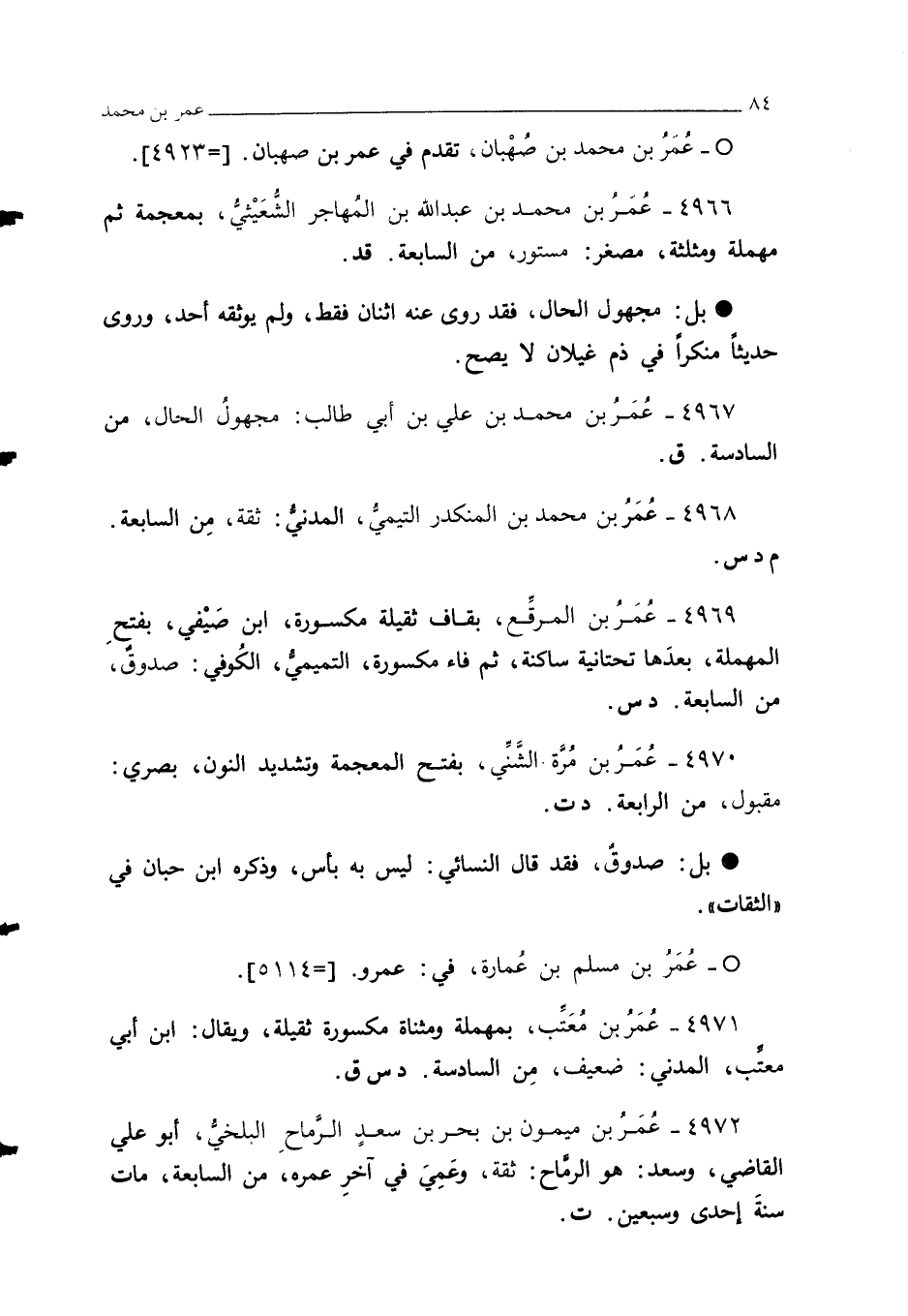 ° - عُمَرُ بن مسلم بن عُمارة، في: عمرو. [=5114].