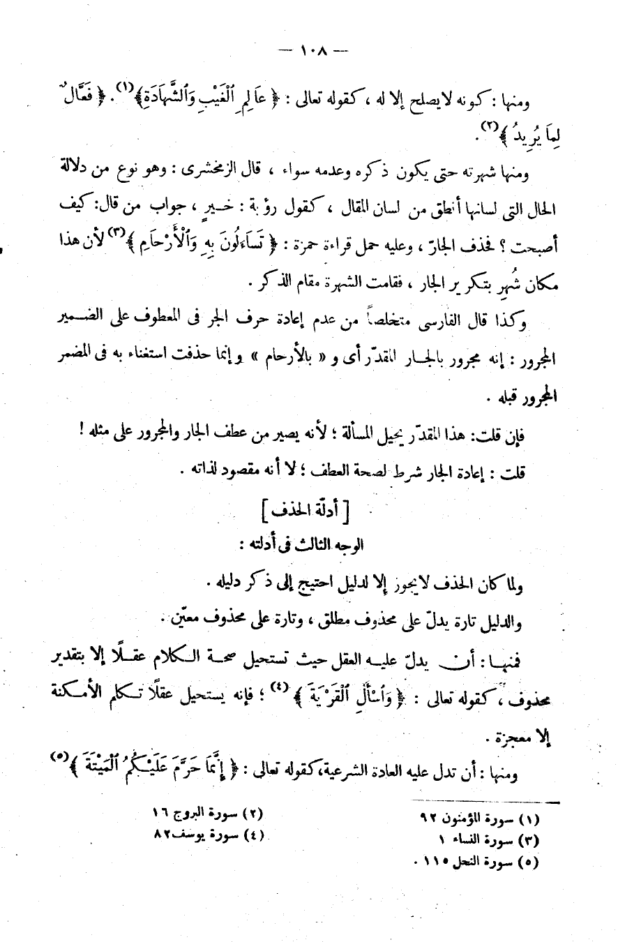 وَلَمَّا كَانَ الْحَذْفُ لَا يَجُوزُ إِلَّا لِدَلِيلٍ احْتِيجَ إِلَى ذِكْرِ دَلِيلِهِ.