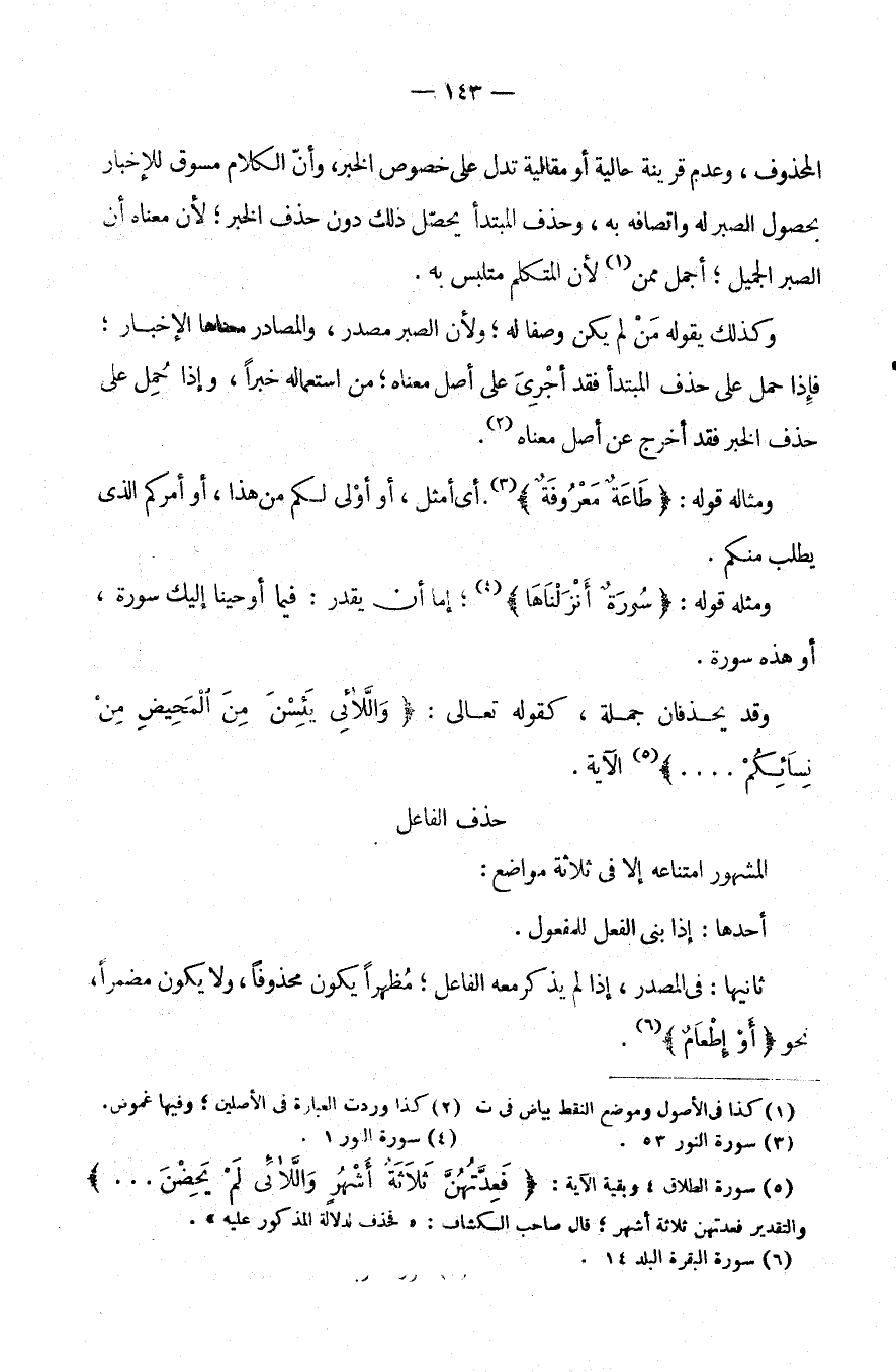 وَقَدْ يُحْذَفَانِ جُمْلَةً كَقَوْلِهِ تَعَالَى: {وَاللَّائِي يَئِسْنَ مِنَ الْمَحِيضِ مِنْ نِسَائِكُمْ} الْآيَةَ.