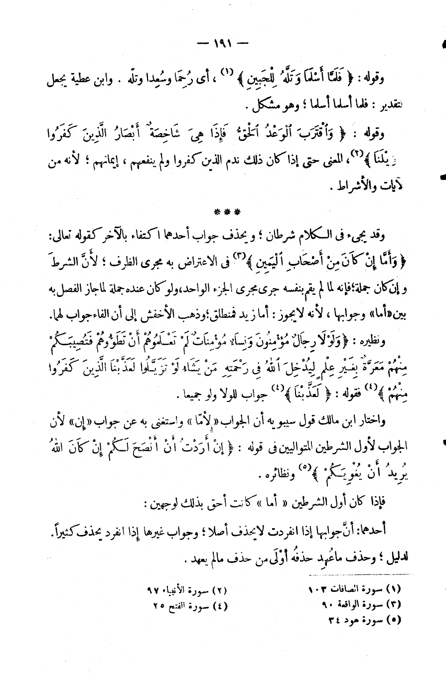 أَحَدُهُمَا: أَنَّ جَوَابَهَا إِذَا انْفَرَدَتْ لَا يُحْذَفُ أَصْلًا وَجَوَابُ غَيْرِهَا إِذَا انْفَرَدَ يُحْذَفُ كَثِيرًا لِدَلِيلٍ وَحَذْفُ مَا عُهِدَ حَذْفُهُ أَوْلَى مِنْ حَذْفِ مَا لَمْ يُعْهَدْ.