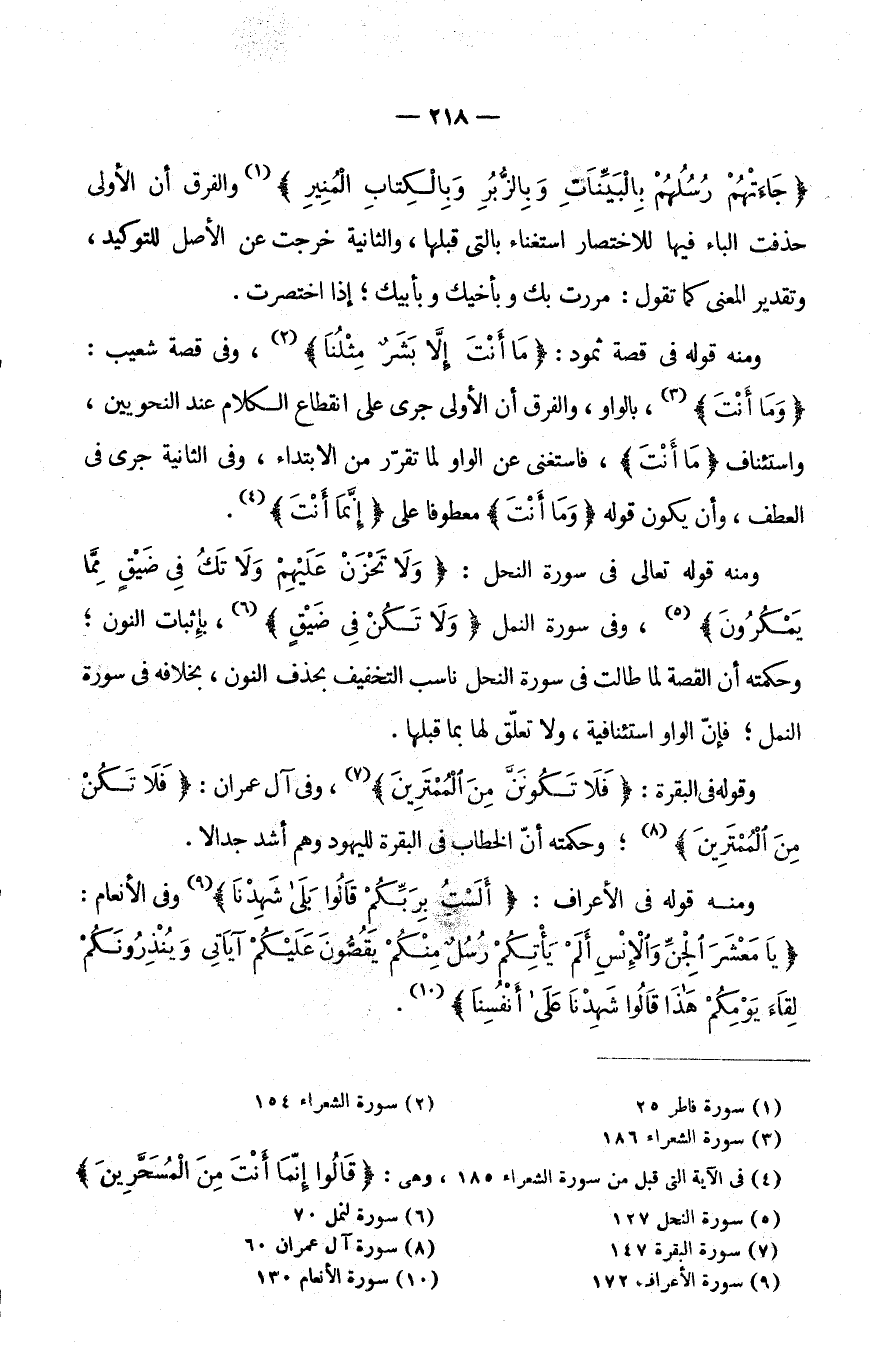 {جاءتهم رسلهم بالبينات وبالزبر وبالكتاب المنير} والفرق أن الأولى حذفت الباء ففيها للاختصار استغناء بالتي قبلها وخرجت عَنِ الْأَصْلِ لِلتَّوْكِيدِ وَتَقْدِيرُ الْمَعْنَى كَمَا تَقُولُ مَرَرْتُ بِكَ وَبِأَخِيكَ وَبِأَبِيكَ إِذَا اخْتَصَرْتَ.