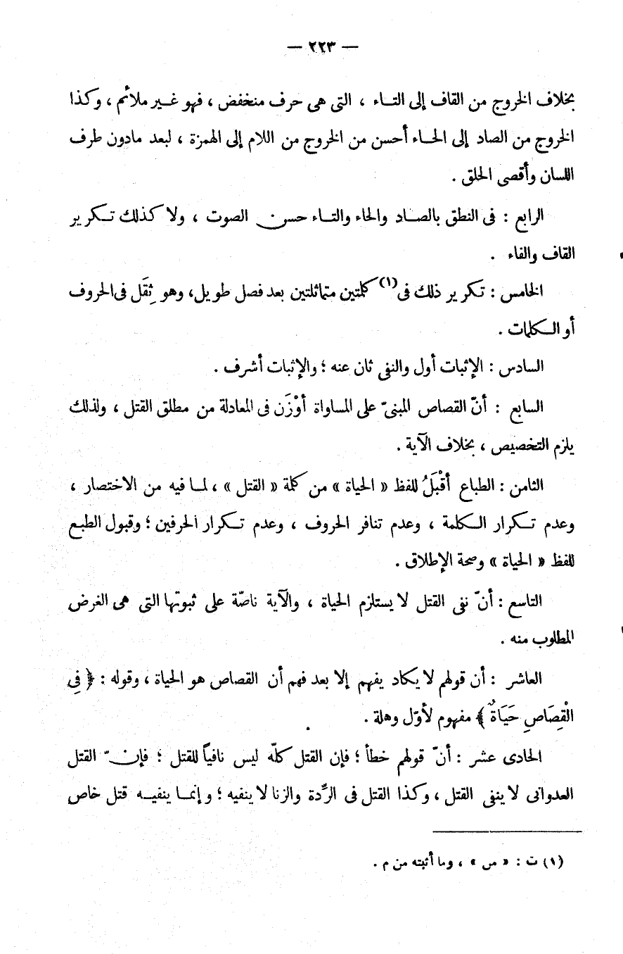 الْحَادِي عَشَرَ: أَنَّ قَوْلَهُمْ خَطَأٌ فَإِنَّ الْقَتْلَ كُلَّهُ لَيْسَ نَافِيًا لِلْقَتْلِ فَإِنَّ الْقَتْلَ الْعُدْوَانِيَّ لَا يَنْفِي الْقَتْلَ وَكَذَا الْقَتْلُ فِي الرِّدَّةِ وَالزِّنَا لَا يَنْفِيهِ وَإِنَّمَا ينفيه قتل خاص.