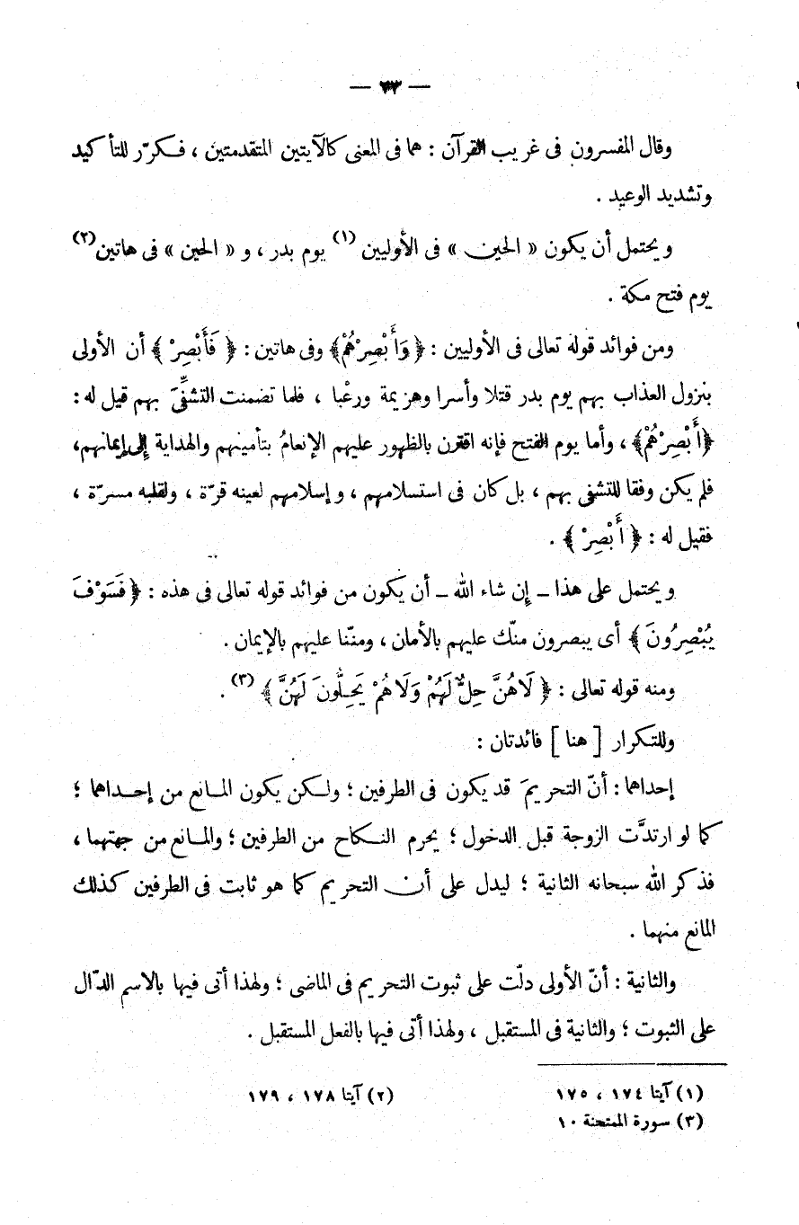وَيَحْتَمِلُ عَلَى هَذَا إِنْ شَاءَ اللَّهُ أَنْ يَكُونَ مِنْ فَوَائِدِ قَوْلِهِ تَعَالَى فِي هَذِهِ: {فَسَوْفَ يُبْصِرُونَ} أَيْ يُبْصِرُونَ مَنَّكَ عَلَيْهِمْ بِالْأَمَانِ وَمَنَّنَا عَلَيْهِمْ بِالْإِيمَانِ.