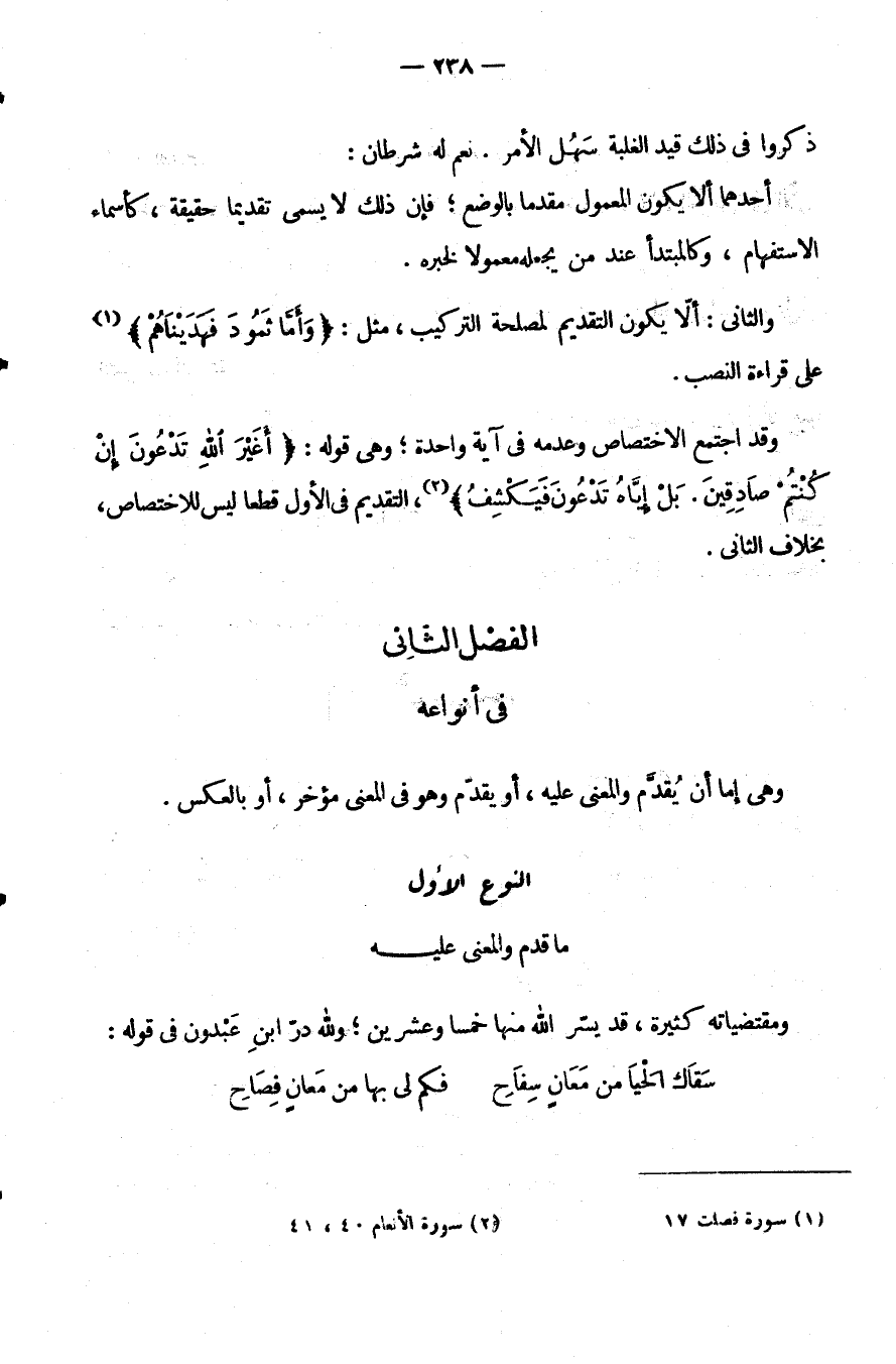 النَّوْعُ الْأَوَّلُ: مَا قُدِّمَ وَالْمَعْنَى عَلَيْهِ.