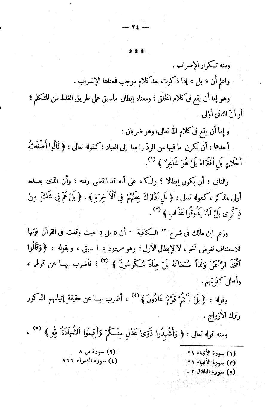 وَاعْلَمْ أَنَّ بَلْ إِذَا ذُكِرَتْ بَعْدَ كَلَامٍ مُوجَبٍ فَمَعْنَاهَا الْإِضْرَابُ.