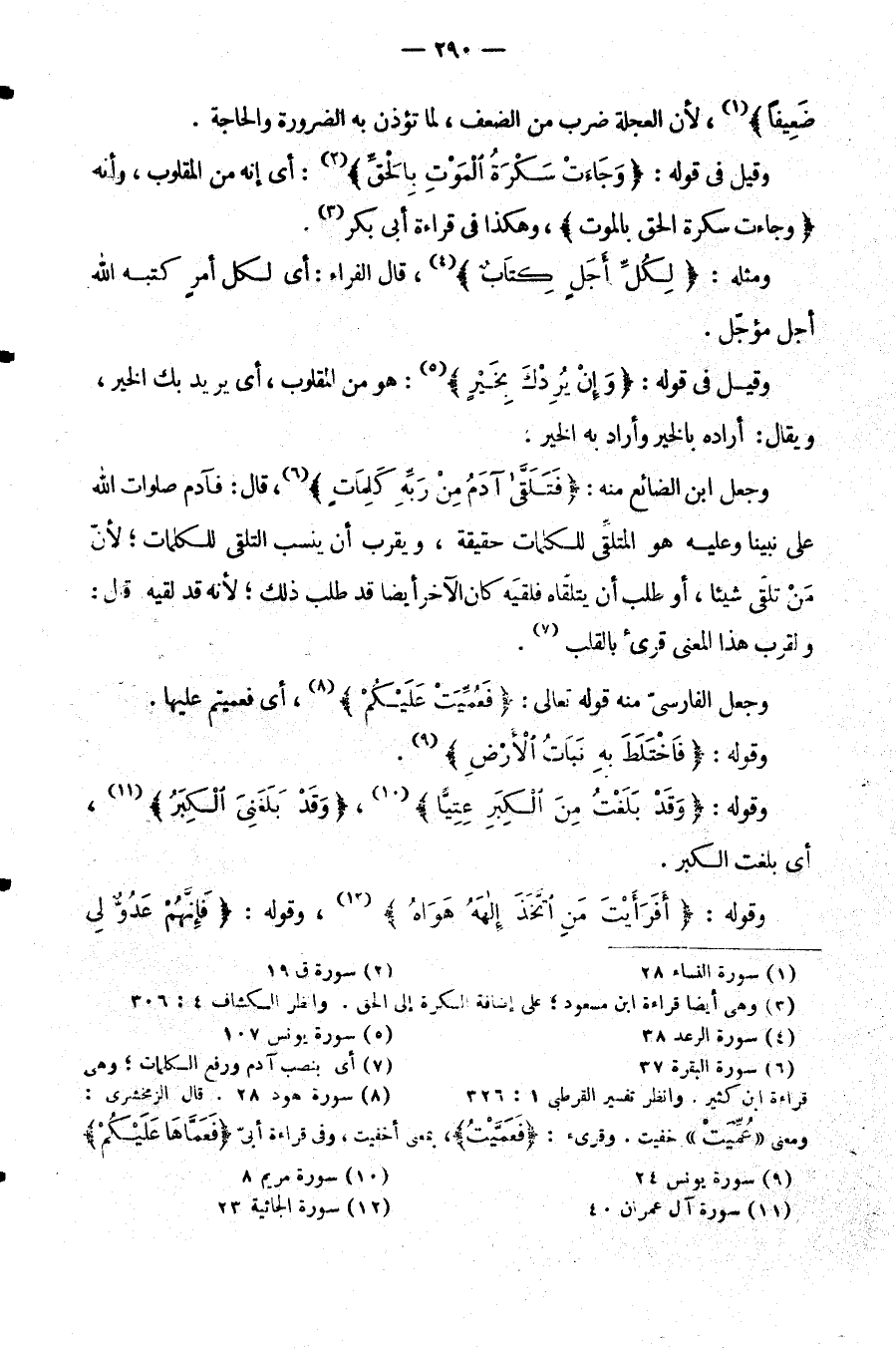 وَجَعَلَ الْفَارِسِيُّ مِنْهُ قَوْلَهُ تَعَالَى: {فَعُمِّيَتْ عليكم} أَيْ فَعَمِيتُمْ عَلَيْهَا.