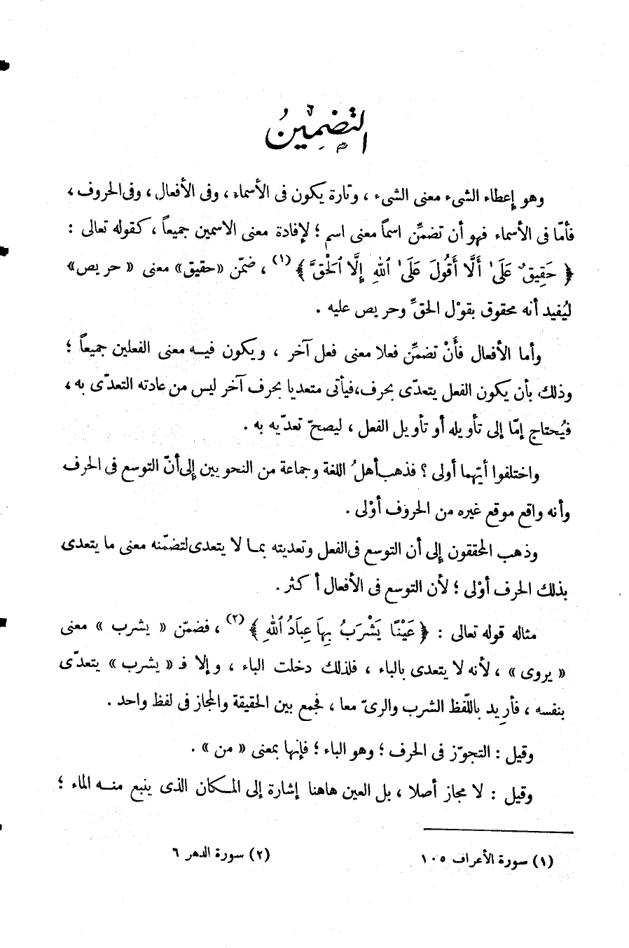 وَذَهَبَ الْمُحَقِّقُونَ إِلَى أَنَّ التَّوَسُّعَ فِي الْفِعْلِ وَتَعْدِيَتَهُ بِمَا لَا يَتَعَدَّى لِتَضَمُّنِهِ مَعْنَى مَا يَتَعَدَّى بِذَلِكَ الْحَرْفِ أَوْلَى لِأَنَّ التَّوَسُّعَ فِي الْأَفْعَالِ أَكْثَرُ.