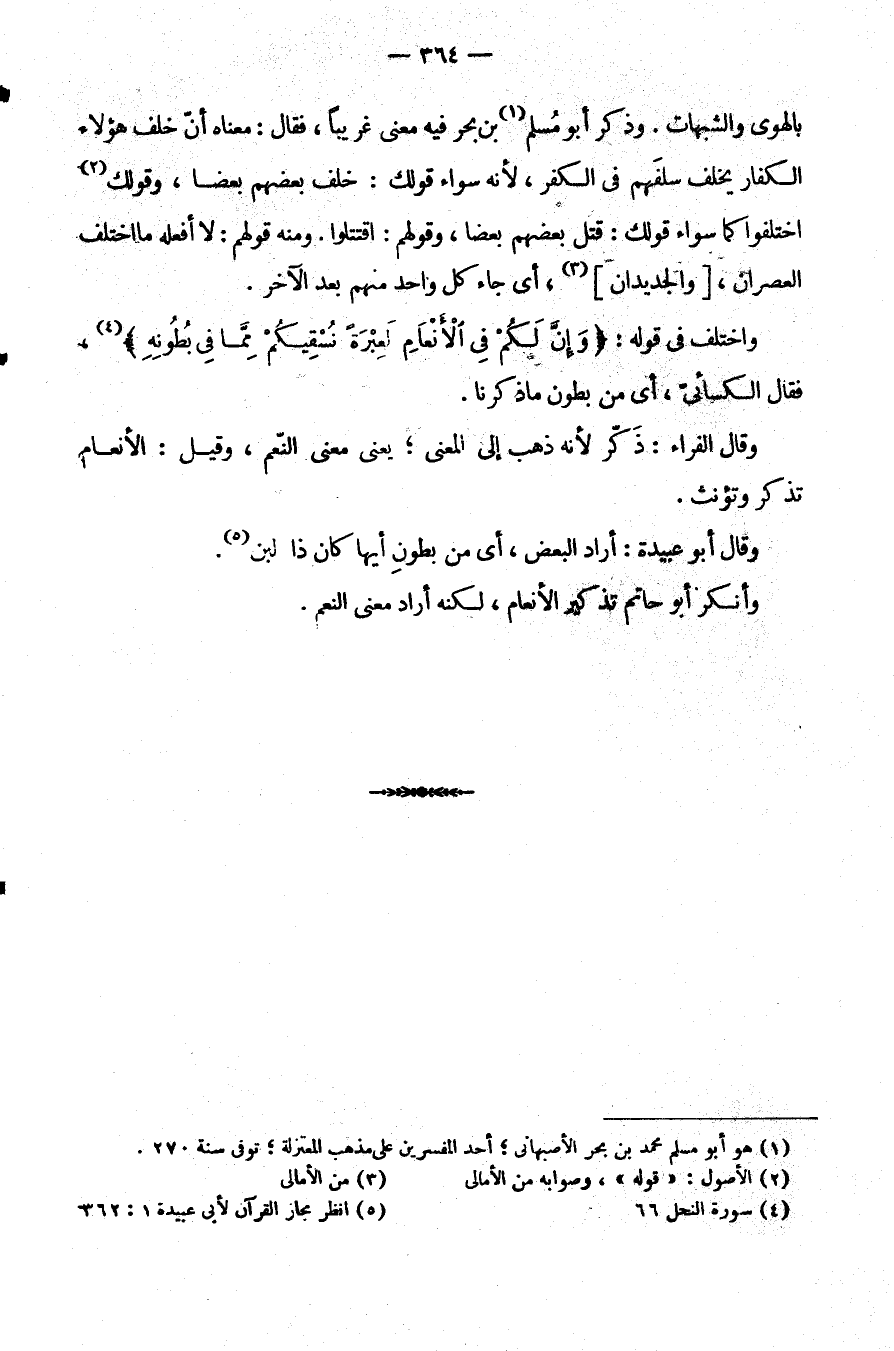 وَأَنْكَرَ أَبُو حَاتِمٍ تَذْكِيرَ الْأَنْعَامِ لَكِنَّهُ أَرَادَ مَعْنَى النَّعَمِ.