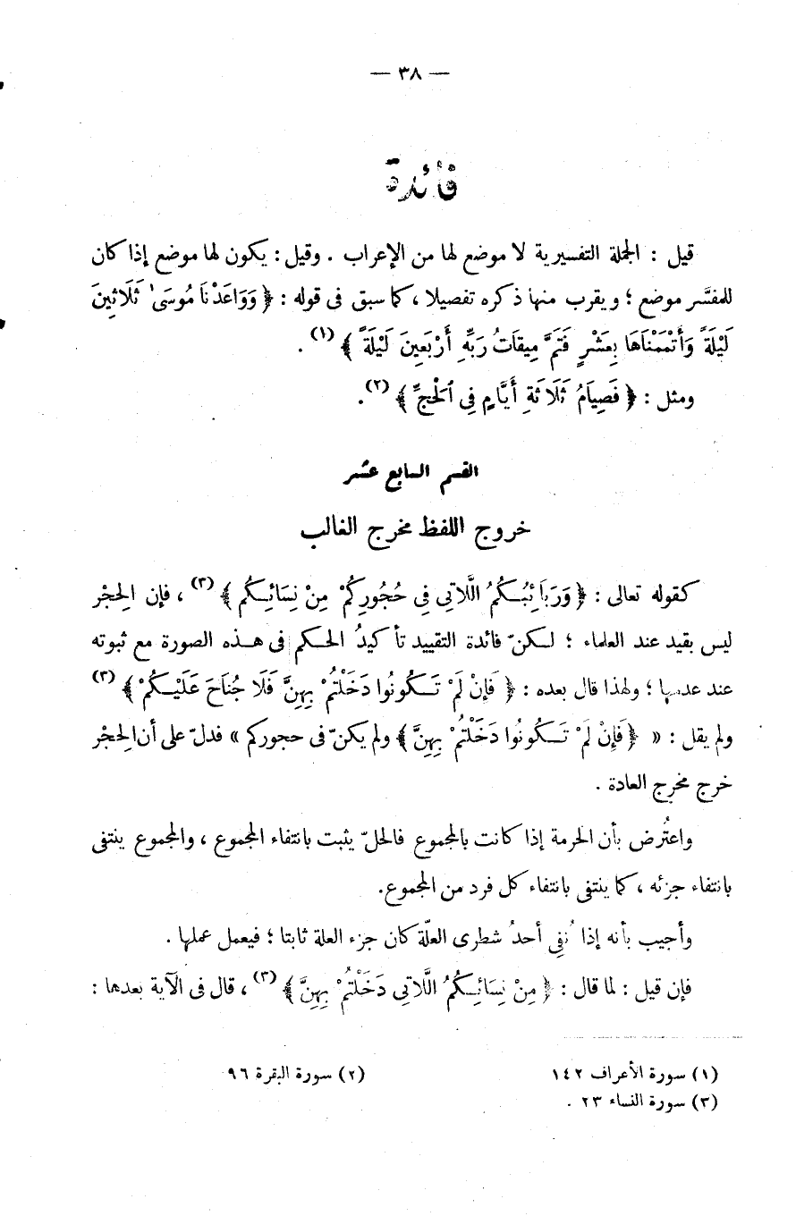 قِيلَ: الْجُمْلَةُ التَّفْسِيرِيَّةُ لَا مَوْضِعَ لَهَا مِنَ الْإِعْرَابِ. وَقِيلَ: يَكُونُ لَهَا مَوْضِعٌ، إِذَا كَانَ لِلْمُفَسَّرِ مَوْضِعٌ وَيَقْرُبُ مِنْهَا ذِكْرُهُ تَفْصِيلًا، كَمَا سَبَقَ فِي قَوْلِهِ: {وَوَاعَدْنَا مُوسَى ثَلَاثِينَ لَيْلَةً وَأَتْمَمْنَاهَا بِعَشْرٍ فَتَمَّ مِيقَاتُ رَبِّهِ أَرْبَعِينَ ليلة} .