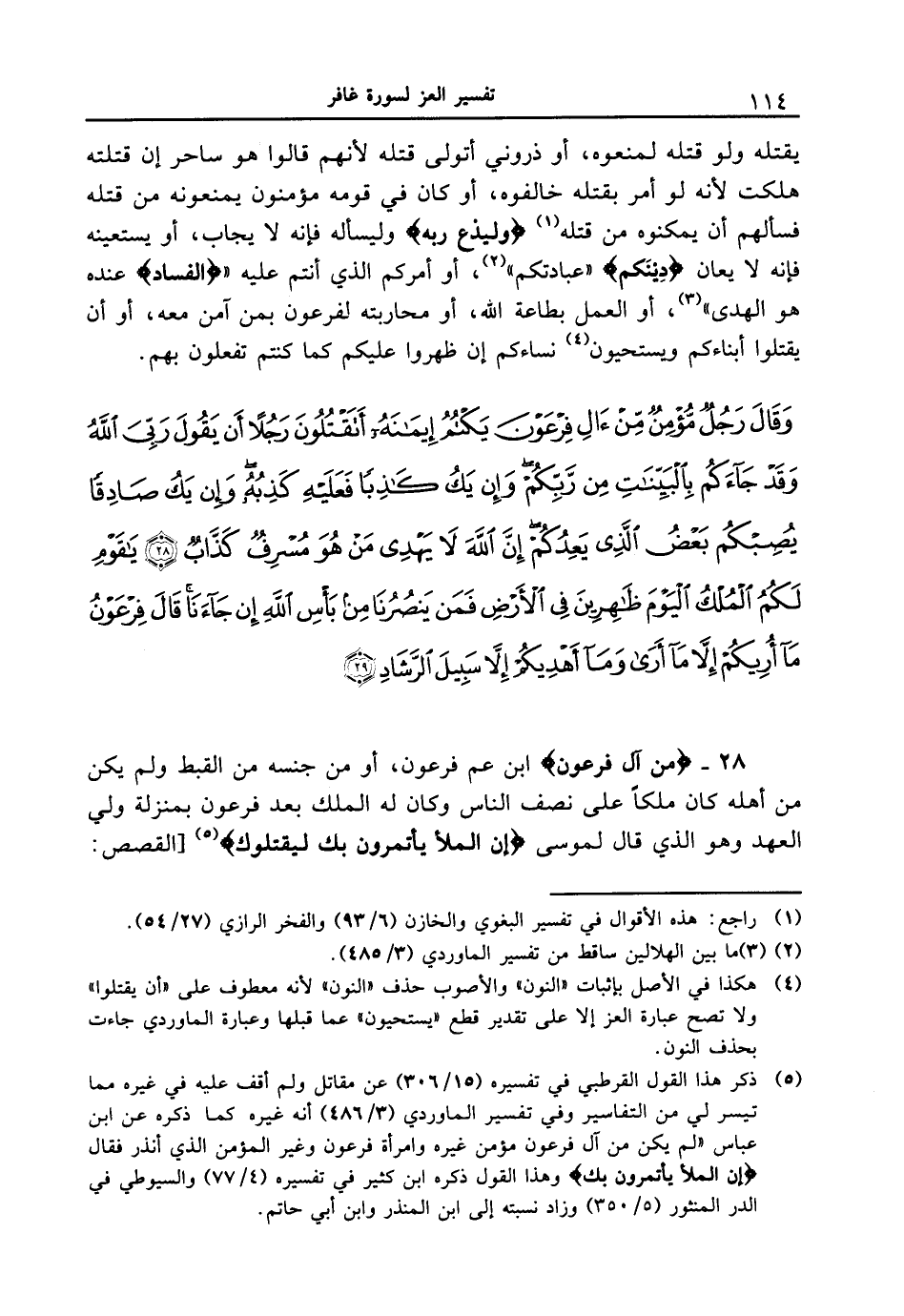 28 - {من آل فِرْعَوْنَ} ابن عم فرعون، أو من جنسه من القبط ولم يكن من أهله كان ملكاً على نصف الناس وكان له الملك بعد فرعون بمنزلة ولي العهد وهو الذي قال لموسى {إِنَّ الملأ يَأْتَمِرُونَ بِكَ لِيَقْتُلُوكَ} [القصص: