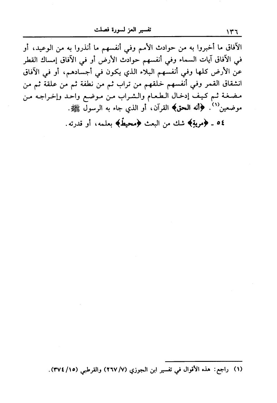 54 - {مِرْيَةٍ} شك من البعث {مُّحِيطٌ} بعلمه، أو قدرته.