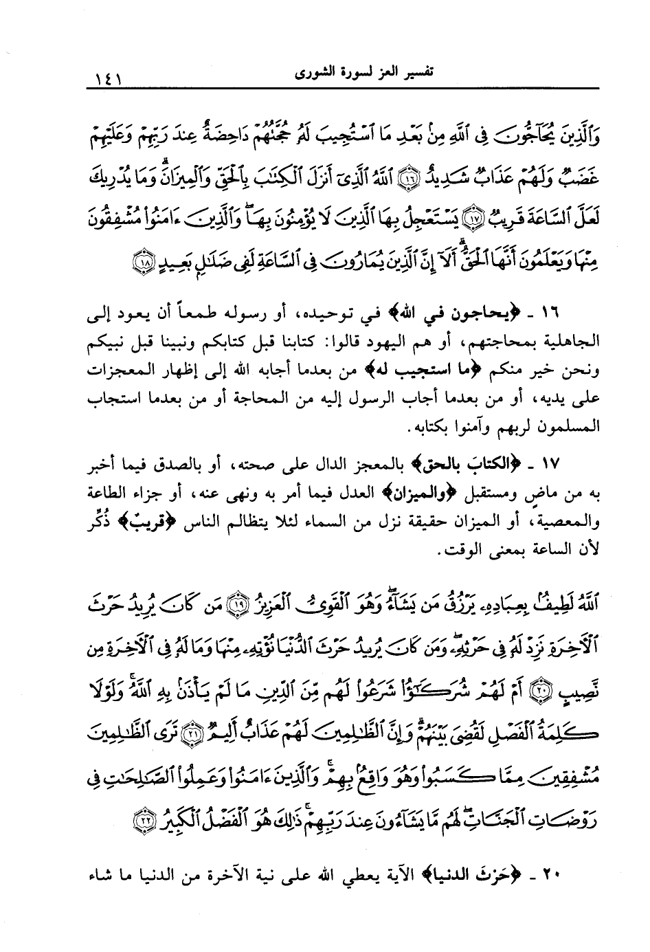 {والذين يحاجون في الله من بعد ما استُجيب له حجتهم داحضةٌ عند ربهم وعليهم غضبٌ ولهم عذابٌ شديدٌ (16) الله الذي أنزل الكتابَ بالحق والميزان وما يدريك لعل الساعة قريبٌ (17) يستعجل بها الذين لا يؤمنون بها والذين ءامنوا مشفقون منها ويعلمون أنها الحق ألا إن الذين يمارون في الساعة لفي ضلالٍ بعيدٍ (18) }