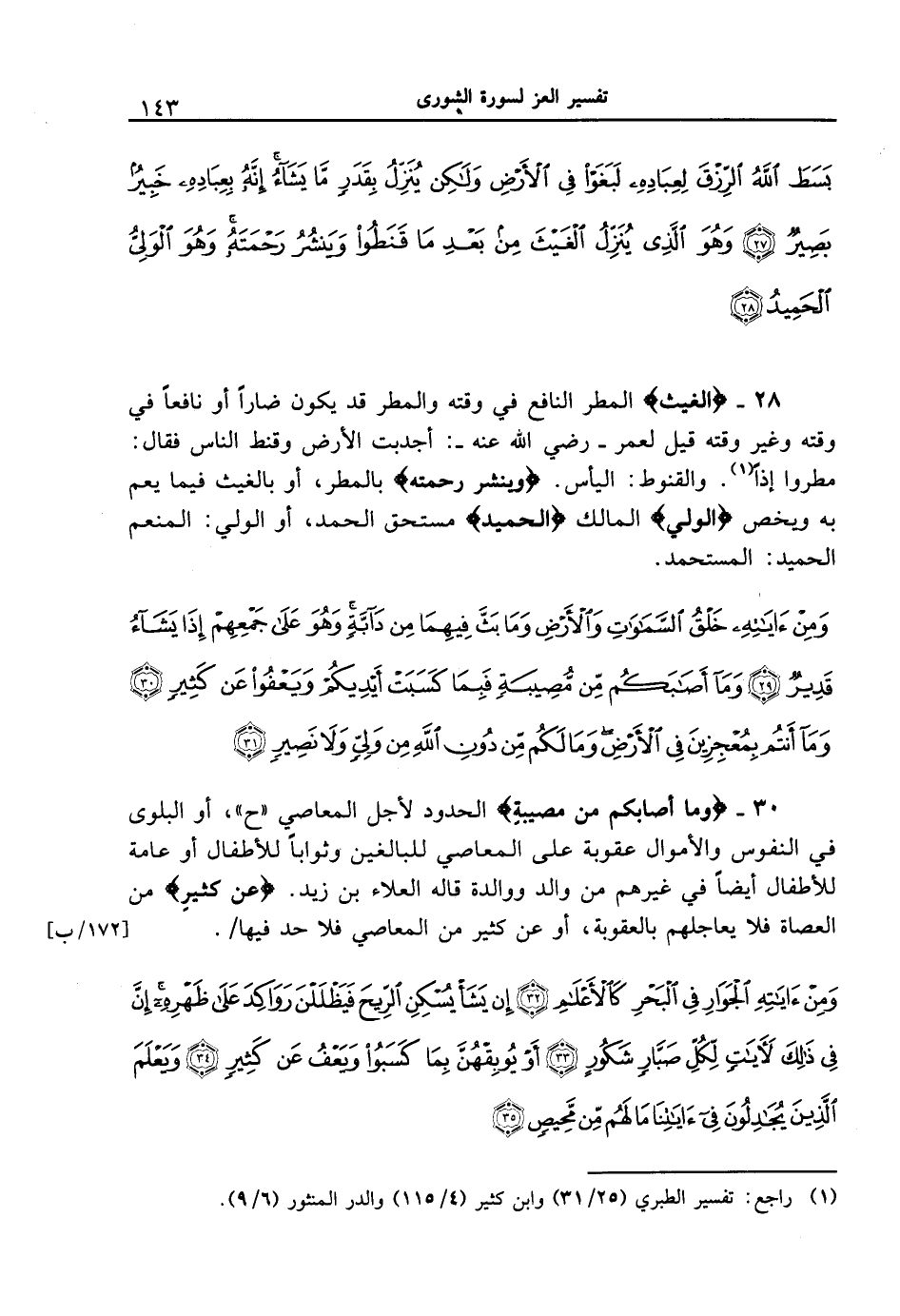 30 - {وَمَآ أَصَابَكُم مِّن مصيبةٍ} الحدود لأجل المعاصي " ح "، أو البلوى في النفوس والأموال عقوبة على المعاصي للبالغين وثواباً للأطفال أو عامة للأطفال أيضاً في غيرهم من والد ووالدة قاله العلاء بن زيد. {عَن كثيرٍ} من العصاة فلا يعاجلهم بالعقوبة، أو عن كثير من المعاصي فلا حد فيها [172 / ب] /.