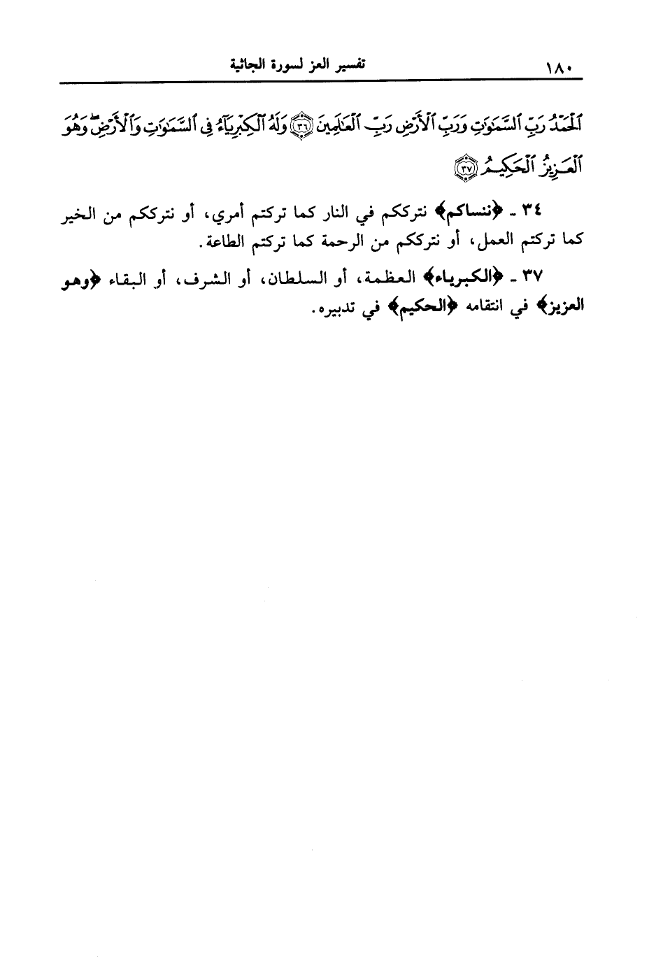 {الحمد رب السموات ورب الأرض رب العالمين (36) وله الكبرياء في السموات والأرض وهو العزيز الحكيم (37) }