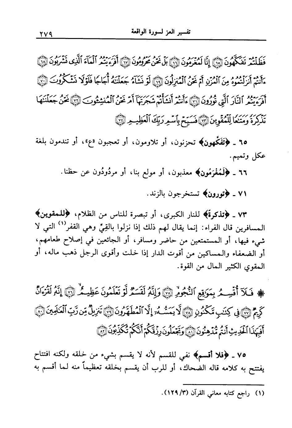 65 - {تَفَكَّهون} تحزنون، أو تلاومون، أو تعجبون " ع "، أو تندمون بلغة عكل وتيم.