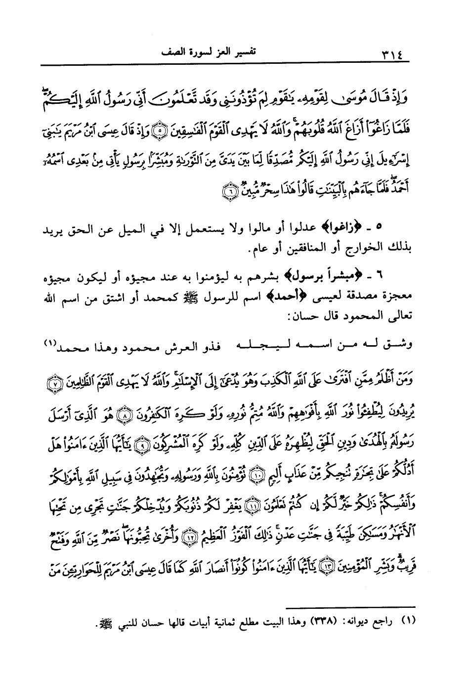 {وإذ قال موسى لقومه يا قوم لم تؤذونني وقد تعلمون أني رسول الله إليكم فلما زاغوا أزاغَ الله قلوبهم والله لا يهدي القوم الفاسقين (5) وإذ قال عيسى ابن مريم يا بني إسرائيل إني رسول الله إليكم مصدقاً لما بين يدي من التوراة ومبشراً برسولٍ يأتي من بعدي اسمه أحمد فلما جاءهم بالبينات قالوا هذا سحرٌ مبين (6) }