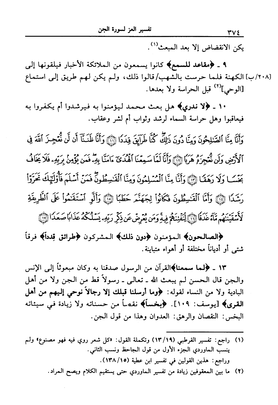 9 - {مَقَاعِدَ لِلسَّمْعِ} كانوا يسمعون من الملائكة الأخبار فيلقونها إلى الكهنة فلما حرست بالشهب [208 / ب] / قالوا ذلك، ولم يكن لهم طريق إلى استماع [الوحي] قبل الحراسة ولا بعدها.