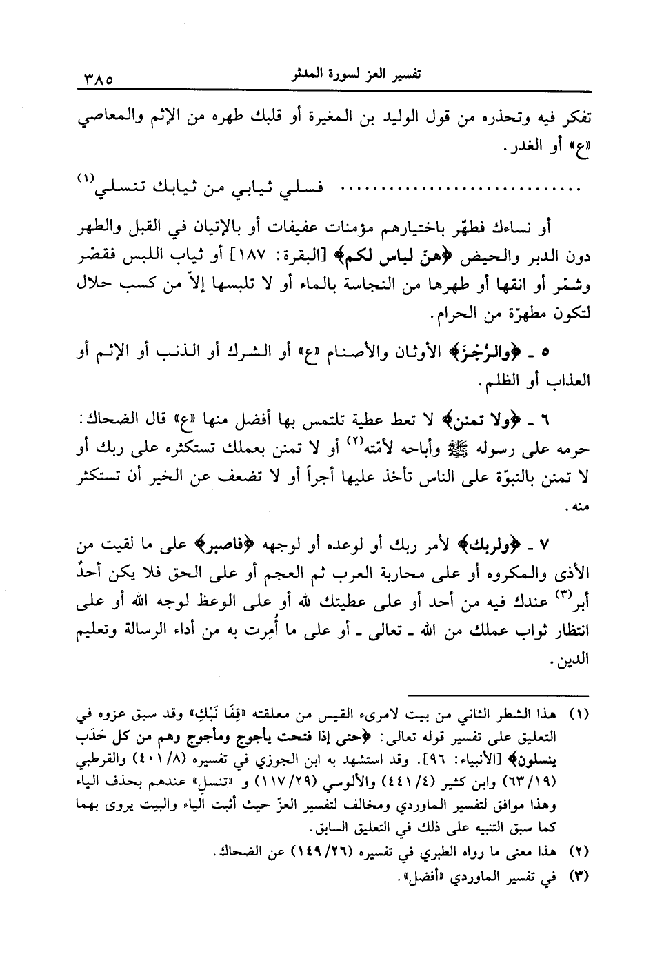 5 - {وَالرُّجْزَ} الأوثان والأصنام " ع " أو الشرك أو الذنب أو الإثم أو العذاب أو الظلم.