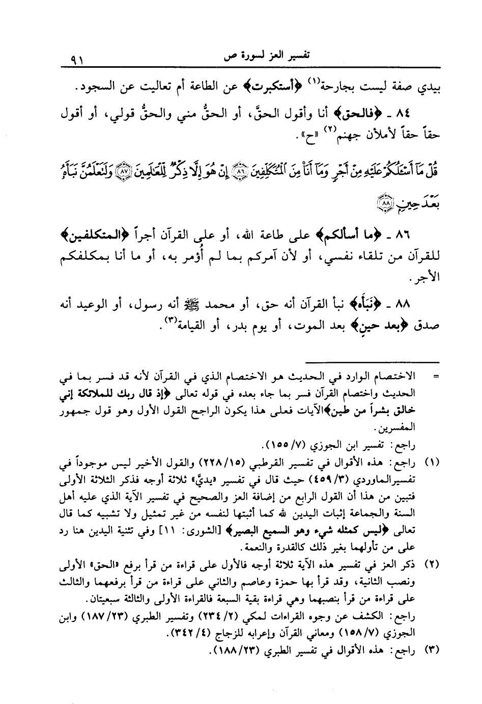 84 - {فالحق} أنا وأقول الحقَّ، أو الحقُّ والحقُّ قولي، أو أقول حقاً حقاً لأملأن جهنم " ح ".