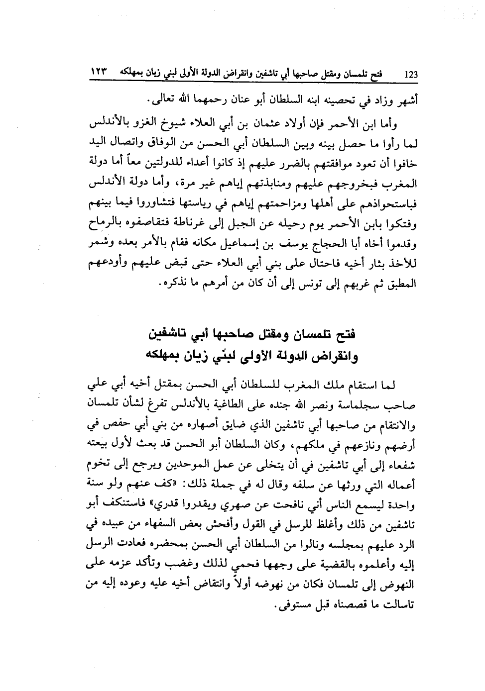 فتح تلمسان ومقتل صَاحبهَا أبي تاشفين وانقراض الدولة الأولى لبني زيان بمهلكه