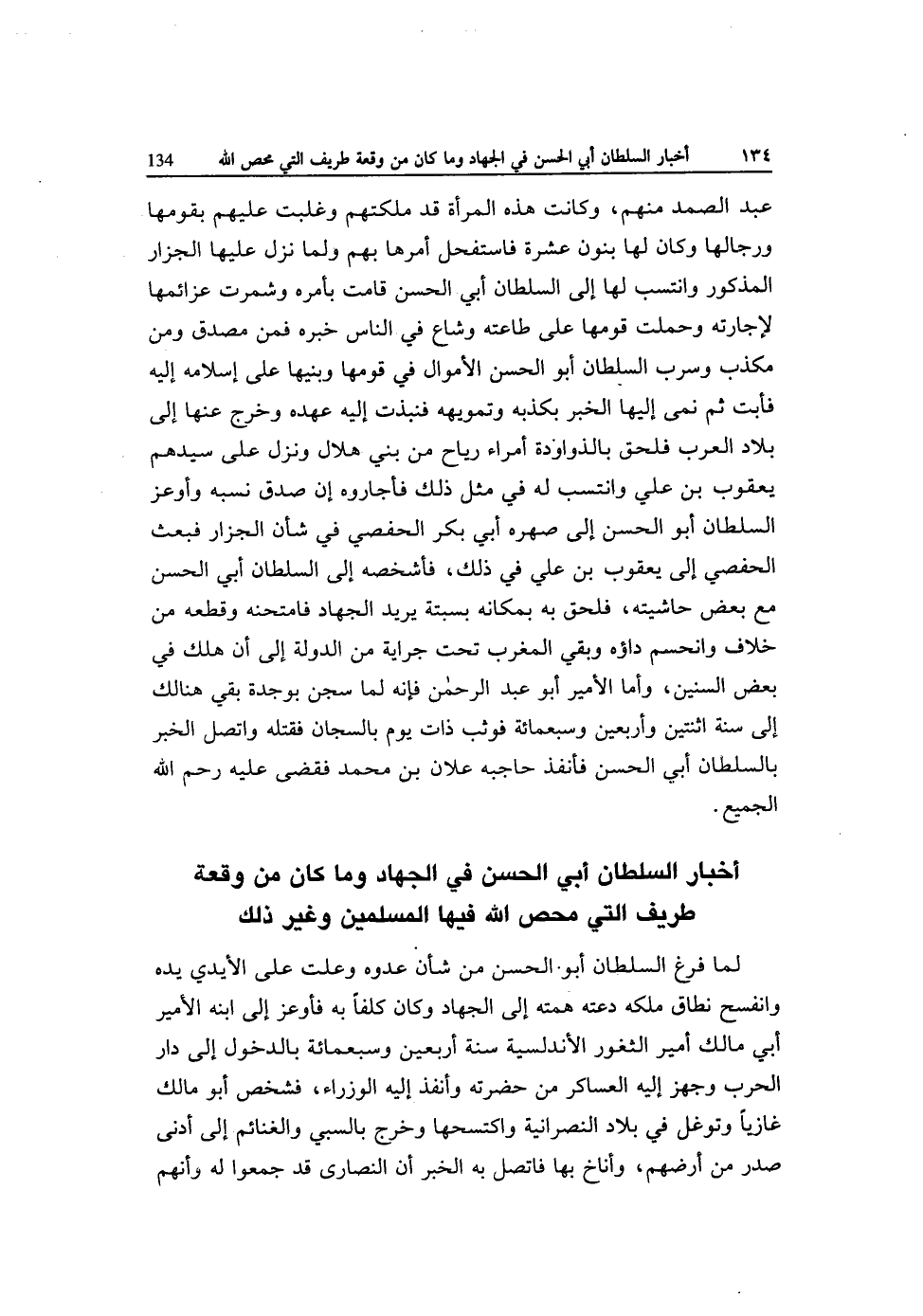 أَخْبَار السُّلْطَان أبي الْحسن فِي الْجِهَاد وَمَا كَانَ من وقْعَة طريف الَّتِي محص الله فِيهَا الْمُسلمين وَغير ذَلِك