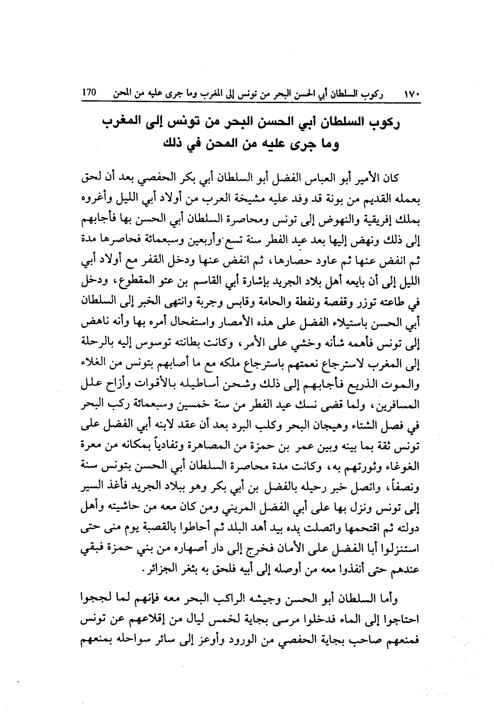ركُوب السُّلْطَان أبي الْحسن الْبَحْر من تونس إِلَى الْمغرب وَمَا جرى عَلَيْهِ من المحن فِي ذَلِك