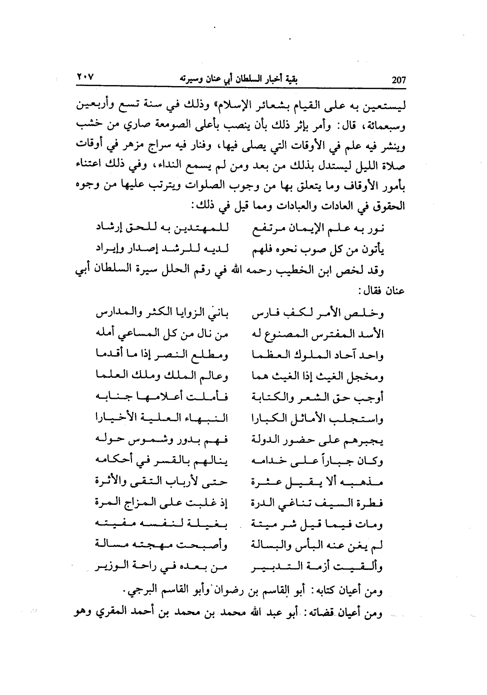 وَقد لخص ابْن الْخَطِيب رَحمَه الله فِي رقم الْحلَل سيرة السُّلْطَان أبي عنان فَقَالَ