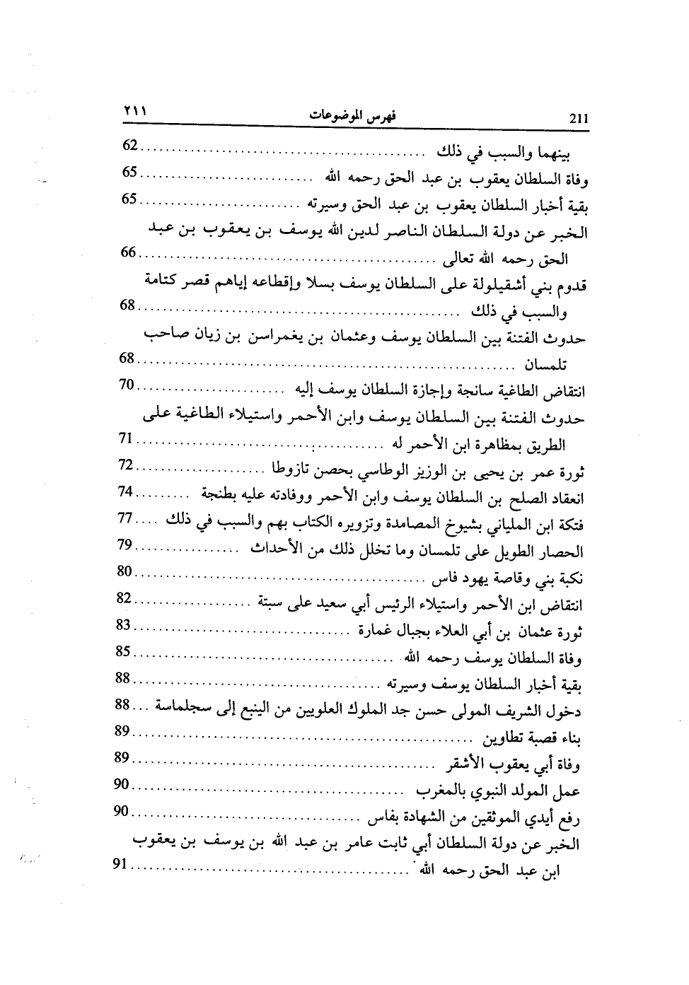 الرِّجَال إِذْ أغْنى وأقنى وَبلغ النَّاظر فِيهِ مَا تمنى يُغني عَن غَيره من الموضوعات فِي فنه بِصِحَّة أسانيده المرفوعات على أَعْلَام حسنه تناديك مِنْهُ سطوره والطروس لَا تلْتَفت لغيري فَلَا عطر بعد عروس وَكَيف لَا ومؤلفه الْعَلامَة من هُوَ فِي غرَّة هَذَا الْعَصْر عَلامَة الطالع الأسعد والسند الأصعد الْمُحَقق النقاد والمشارك فِي جَمِيع الْفُنُون بالذهن الْوَقَّاد المرتوي من نهر كل فَضِيلَة بِمَا راق وحلا أَبُو الْعَبَّاس سَيِّدي أَحْمد الناصري الدرعي شمس ثغر سلا أبقى الله بركته وأدام فِي اكْتِسَاب الْمَعَالِي حركته فَللَّه دره من مؤلف ألف بَين الكمالات وشنف السّمع بأصح المقالات فِي هَذَا التَّارِيخ الَّذِي أرخت فِي صَحَائِف الْكَمَال آيَاته وخلدت فِي دفاتر الْمجد فضائله وكراماته وَقد زَاده رونق الطَّبْع نورا على نور وأفاده اجتلاء على مَنَابِر الظُّهُور فَقرب نوره لمقتبسه وَسَهل ملكه لملتمسه وَلما ملك حسنه خاطري وفؤادي وسلك بَين مَنْهَج قصدي ومرادي وصرت بِهِ أنشط من ظَبْي مقمر وأسلط عَلَيْهِ من ذِئْب متنمر تشوفت لإنشاء امتداحه وتشوقت لإملاء أمداحه بِمَا لَا أعده فِي شَيْء من طَبَقَات الفصاحة عِنْد فرسَان هَذَا الميدان وَلَكِن عُذْري عِنْد الْوَاقِع عَلَيْهِ أَنه لقطَة عجلَان مَا لَهُ فِي الْأَدَب يدان فَقلت فِي ذَلِك مؤرخا تَمام طبعه فِي بداعة صنعه ورقة طبعه بقول وسيط من بَحر الْبَسِيط