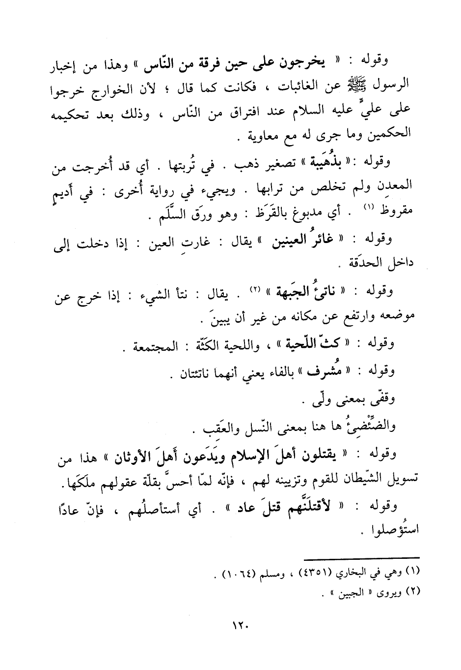 وَقَوله: ((يخرجُون على حِين فرقة من النَّاس)) وَهَذَا من إِخْبَار الرَّسُول صلى الله عَلَيْهِ وَسلم عَن الغائبات، فَكَانَت كَمَا قَالَ؛ لِأَن الْخَوَارِج خَرجُوا على عَليّ عَلَيْهِ السَّلَام عِنْد افْتِرَاق من النَّاس، وَذَلِكَ بعد تحكيمه الْحكمَيْنِ وَمَا جرى لَهُ مَعَ مُعَاوِيَة.