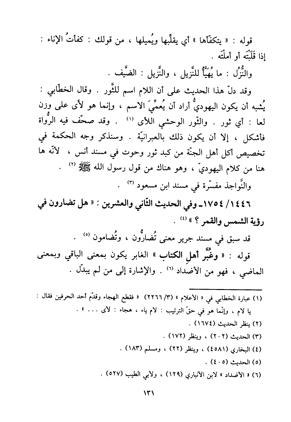 1446 - / 1754 - وَفِي الحَدِيث الثَّانِي وَالْعِشْرين: ((هَل تضَارونَ فِي رُؤْيَة الشَّمْس وَالْقَمَر)) .