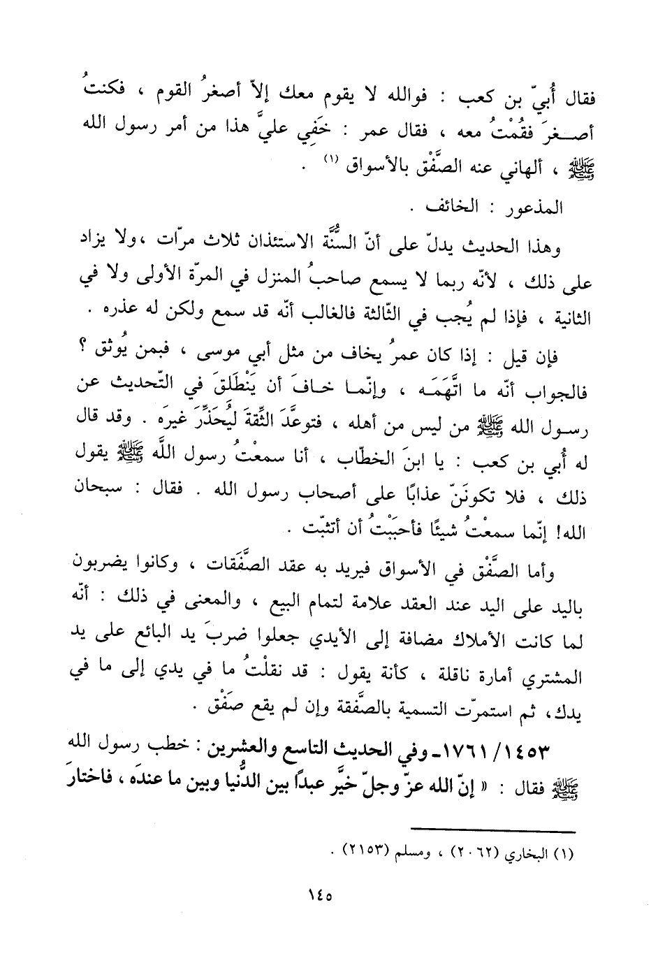 فَقَالَ أبي بن كَعْب: فوَاللَّه لَا يقوم مَعَك إِلَّا أَصْغَر الْقَوْم، فَكنت أَصْغَر فَقُمْت مَعَه، فَقَالَ عمر: خَفِي عَليّ هَذَا من أَمر رَسُول الله صلى الله عَلَيْهِ وَسلم، ألهاني عَنهُ الصفق بالأسواق.