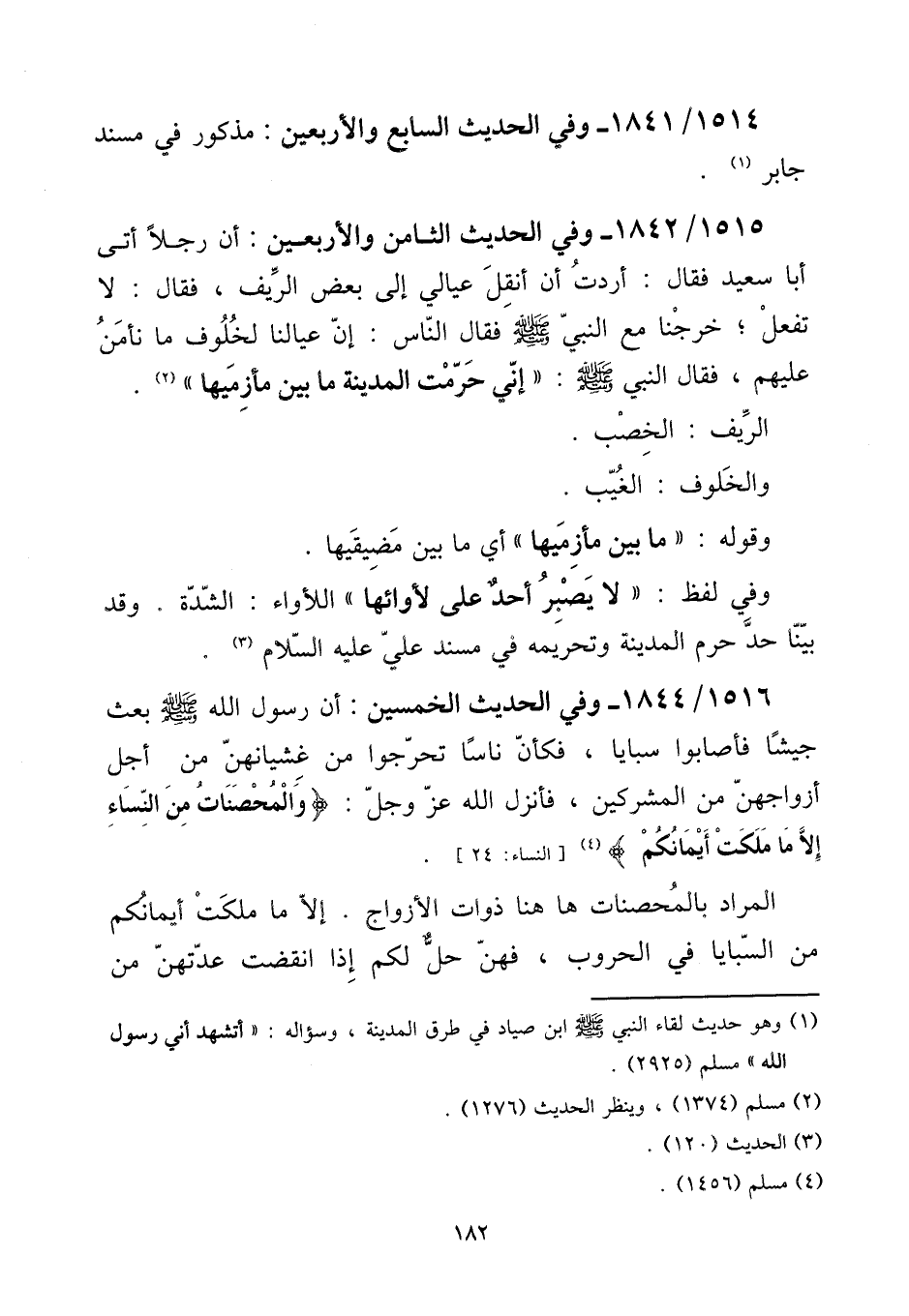 1515 - / 1842 - وَفِي الحَدِيث الثَّامِن وَالْأَرْبَعِينَ: أَن رجلا أَتَى أَبَا سعيد فَقَالَ: أردْت أَن أنقل عيالي إِلَى بعض الرِّيف، فَقَالَ: لَا تفعل؛ خرجنَا مَعَ النَّبِي صلى الله عَلَيْهِ وَسلم فَقَالَ النَّاس: إِن عيالنا لخلوف مَا نَأْمَن عَلَيْهِم، فَقَالَ النَّبِي صلى الله عَلَيْهِ وَسلم: ((إِنِّي حرمت الْمَدِينَة مَا بَين مأزميها)) .