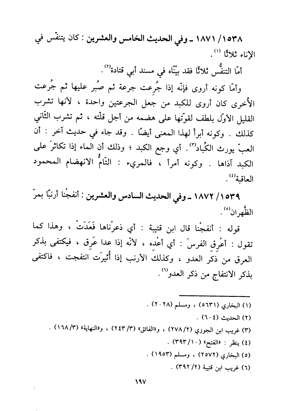 1538 - / 1871 - وَفِي الحَدِيث الْخَامِس وَالْعِشْرين: كَانَ يتنفس فِي الْإِنَاء ثَلَاثًا.