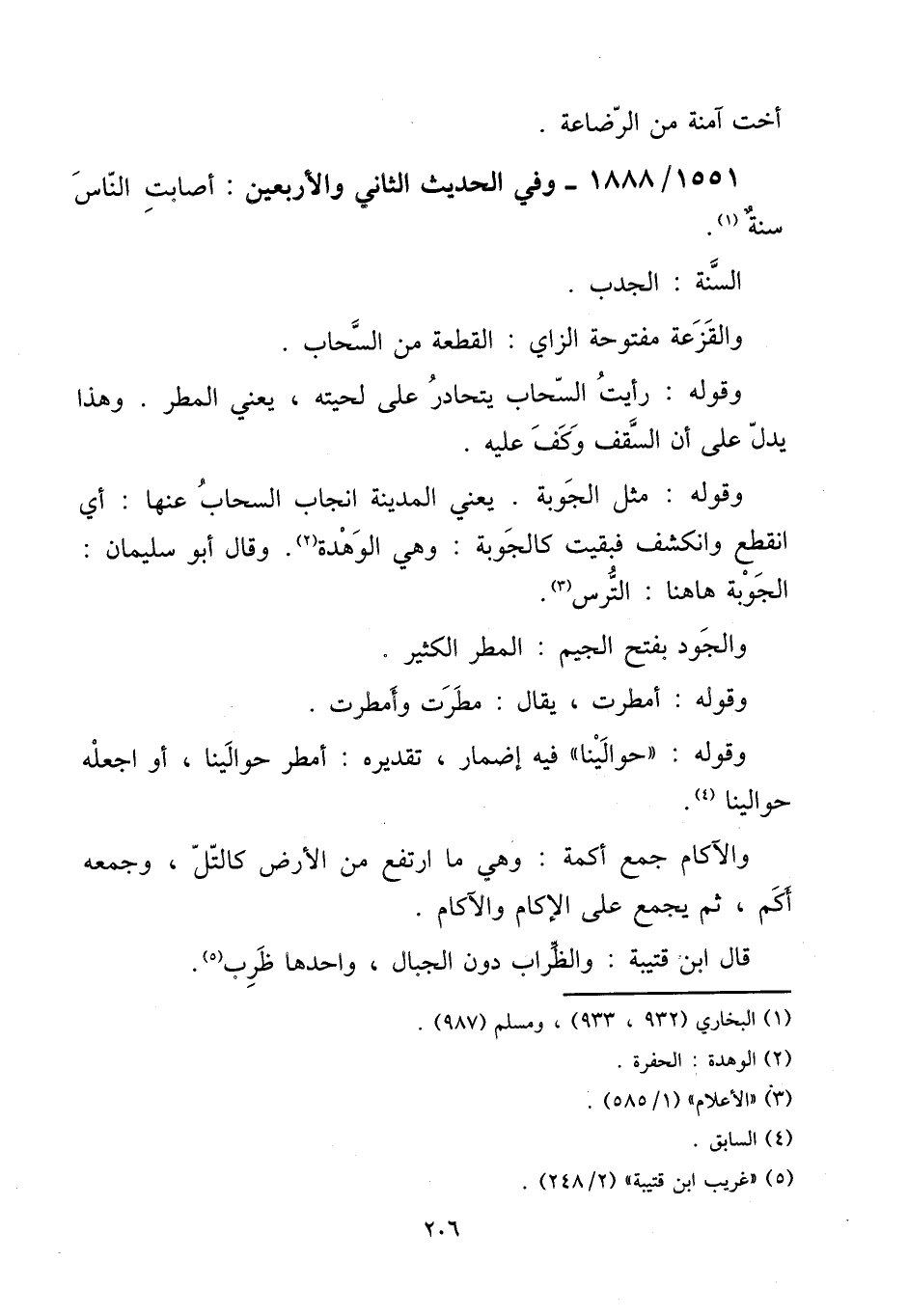 1551 - / 1888 - وَفِي الحَدِيث الثَّانِي وَالْأَرْبَعِينَ: أَصَابَت النَّاس سنة.