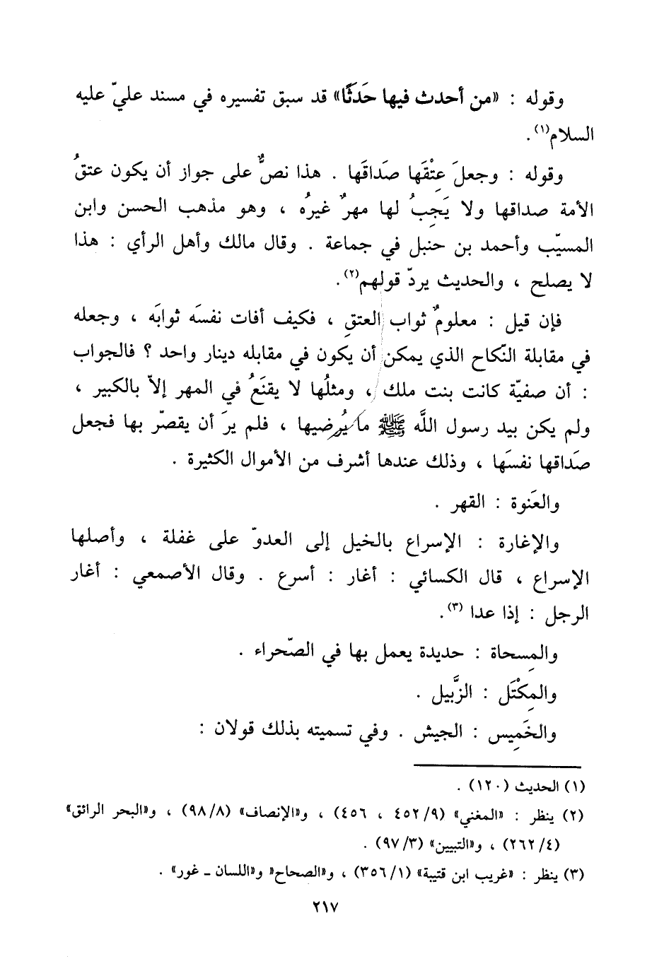 وَقَوله: وَجعل عتقهَا صَدَاقهَا. هَذَا نَص على جَوَاز أَن يكون عتق الْأمة صَدَاقهَا وَلَا يجب لَهَا مهر غَيره، وَهُوَ مَذْهَب الْحسن وَابْن الْمسيب وَأحمد بن حَنْبَل فِي جمَاعَة. وَقَالَ مَالك وَأهل الرَّأْي: هَذَا لَا يصلح، والْحَدِيث يرد قَوْلهم.