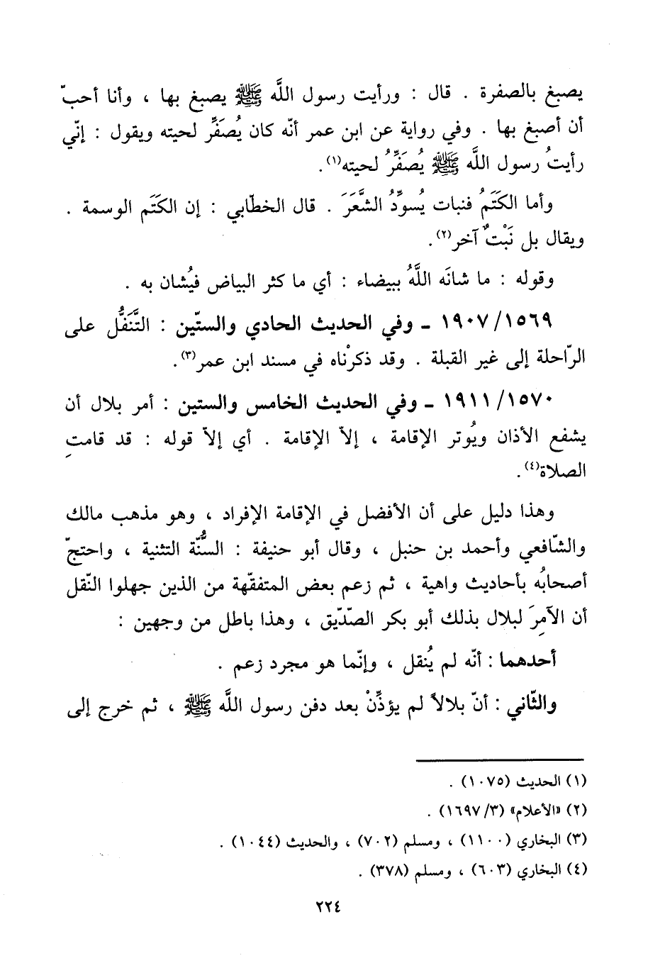 1570 - / 1911 - وَفِي الحَدِيث الْخَامِس وَالسِّتِّينَ: أَمر بِلَال أَن يشفع الْأَذَان ويوتر الْإِقَامَة، إِلَّا الْإِقَامَة. أَي إِلَّا قَوْله: قد قَامَت الصَّلَاة.