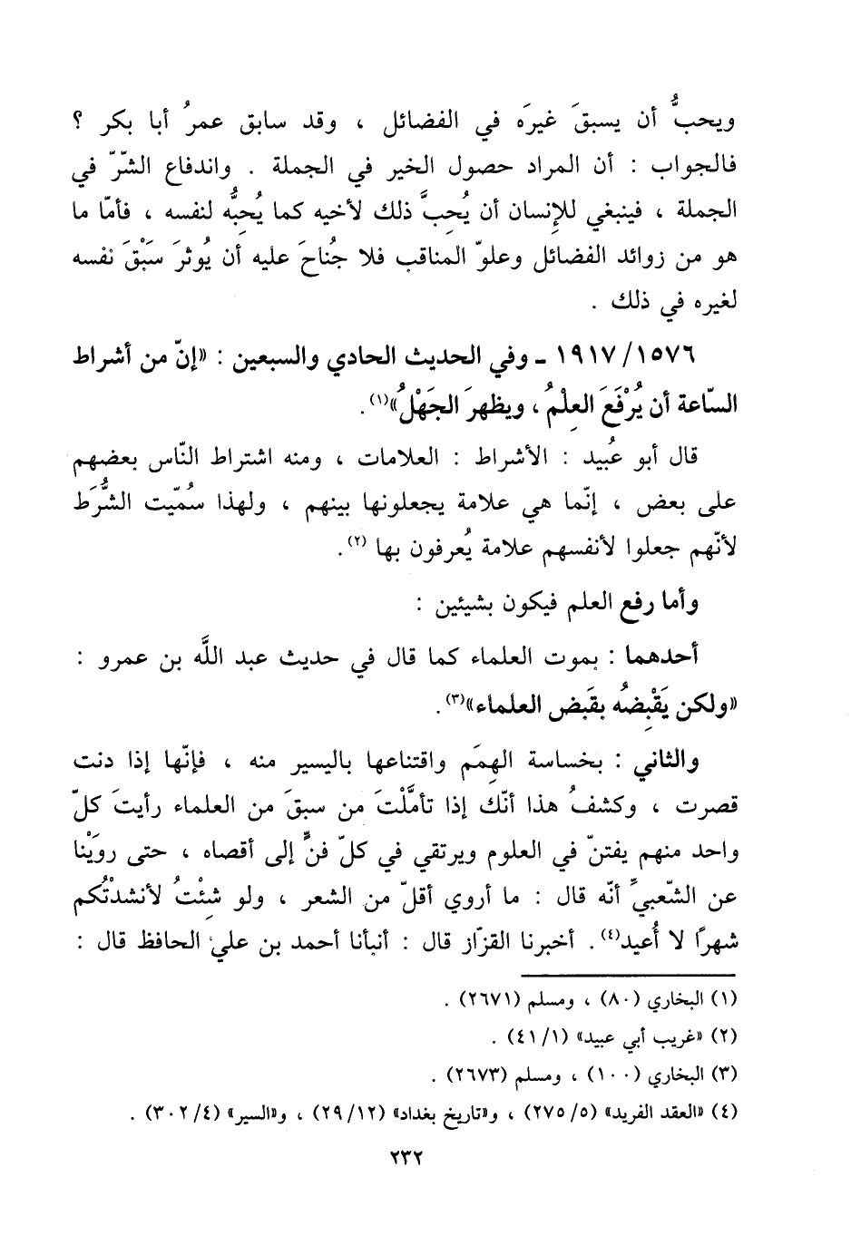 1576 - / 1917 - وَفِي الحَدِيث الْحَادِي وَالسبْعين: ((إِن من أَشْرَاط السَّاعَة أَن يرفع الْعلم، وَيظْهر الْجَهْل)) .