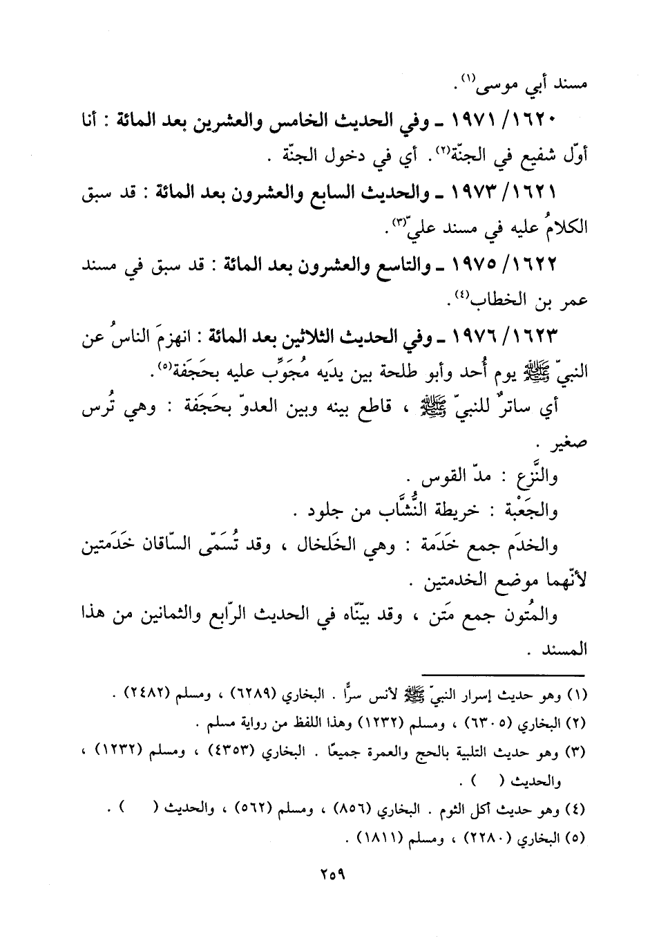 1623 - / 1976 - وَفِي الحَدِيث الثَّلَاثِينَ بعد الْمِائَة: انهزم النَّاس عَن النَّبِي صلى الله عَلَيْهِ وَسلم يَوْم أحد وَأَبُو طَلْحَة بَين يَدَيْهِ مجوب عَلَيْهِ بحجفة.
