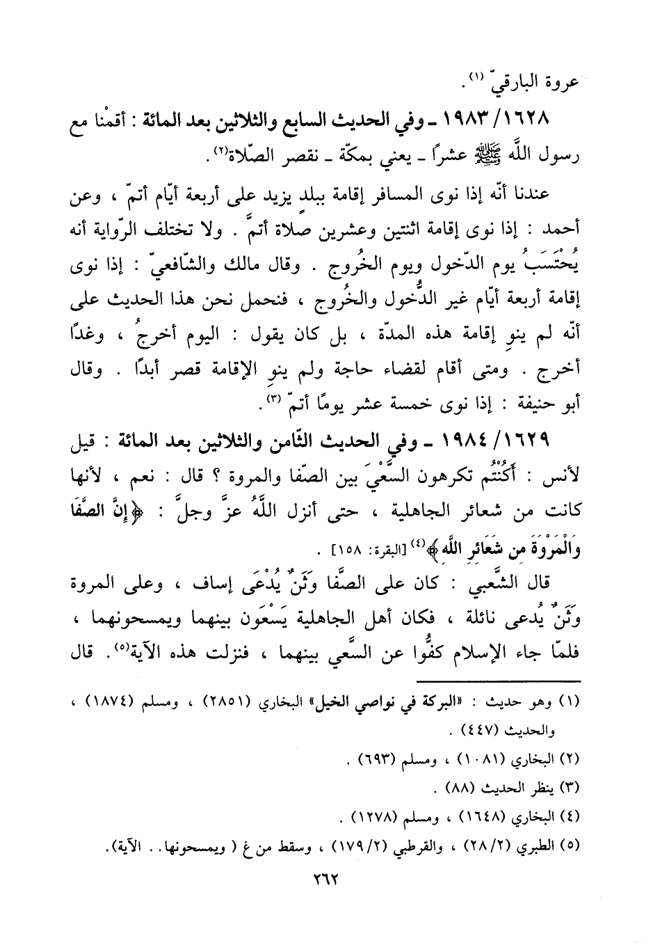 1629 - / 1984 - وَفِي الحَدِيث الثَّامِن وَالثَّلَاثِينَ بعد الْمِائَة: قيل لأنس: أَكُنْتُم تَكْرَهُونَ السَّعْي بَين الصَّفَا والمروة؟ قَالَ: نعم، لِأَنَّهَا كَانَت من شَعَائِر الْجَاهِلِيَّة، حَتَّى أنزل الله عز وَجل: {إِن الصَّفَا والمروة من شَعَائِر الله} [الْبَقَرَة: 158] .