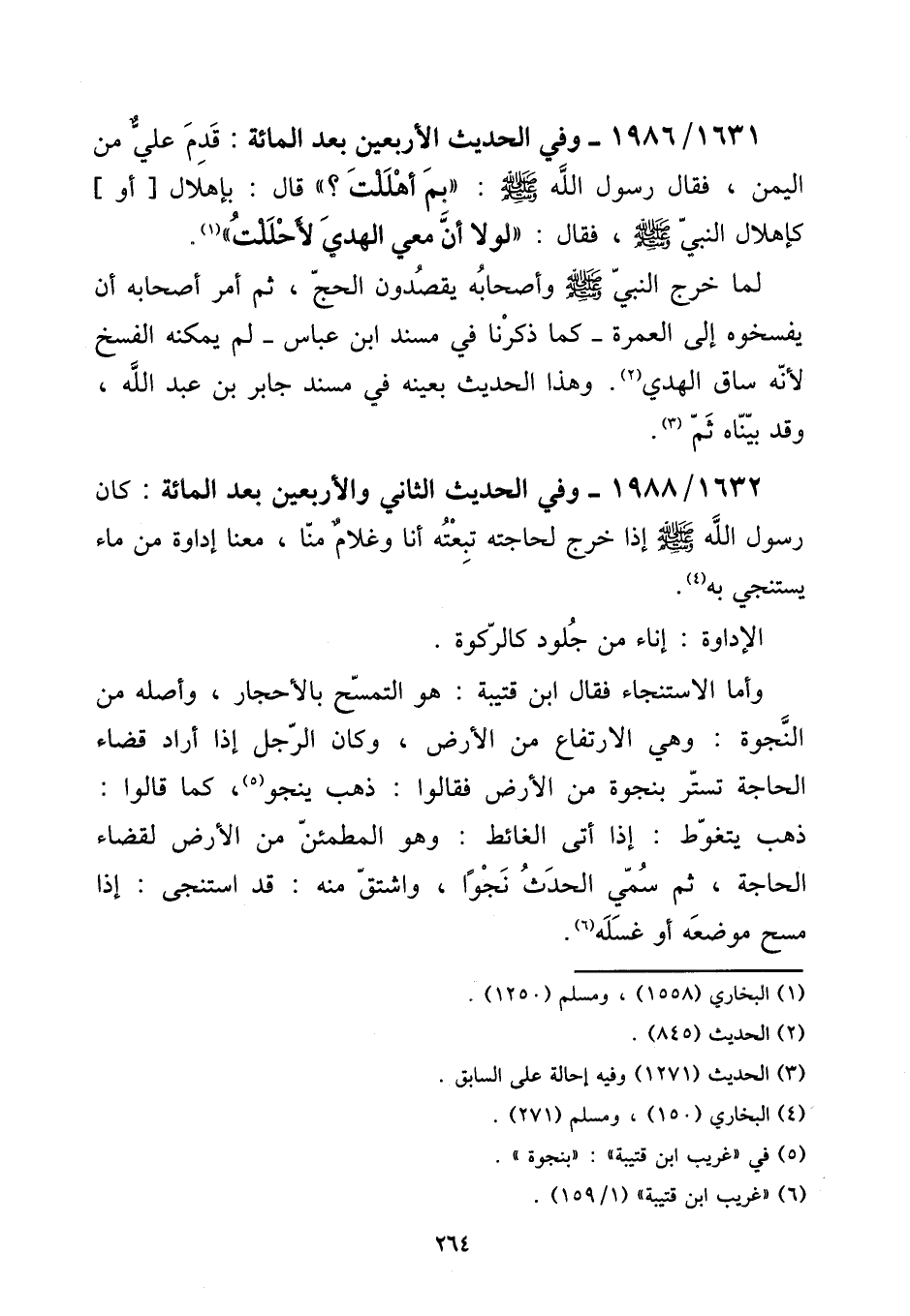 1632 - / 1988 - وَفِي الحَدِيث الثَّانِي وَالْأَرْبَعِينَ بعد الْمِائَة: كَانَ رَسُول الله صلى الله عَلَيْهِ وَسلم إِذا خرج لِحَاجَتِهِ تَبعته أَنا وَغُلَام منا، مَعنا إداوة من مَاء يستنجي بِهِ.
