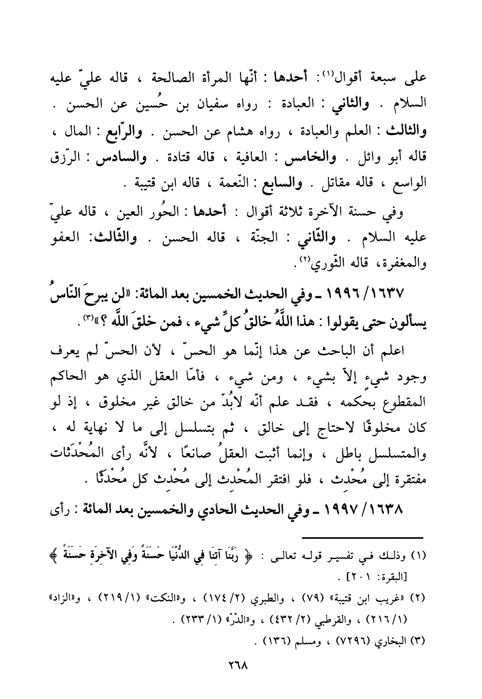 1637 - / 1996 - وَفِي الحَدِيث الْخمسين بعد الْمِائَة: ((لن يبرح النَّاس يسْأَلُون حَتَّى يَقُولُوا: هَذَا الله خَالق كل شَيْء، فَمن خلق الله؟)) .