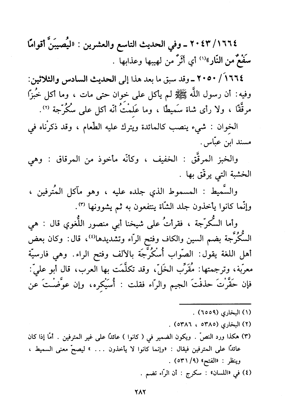 1664 - / 2050 - وَقد سبق مَا بعد هَذَا إِلَى الحَدِيث السَّادِس وَالثَّلَاثِينَ: وَفِيه: أَن رَسُول الله صلى الله عَلَيْهِ وَسلم لم يَأْكُل على خوان حَتَّى مَاتَ، وَمَا أكل خبْزًا مرققا، وَلَا رأى شَاة سميطا، وَمَا علمت أَنه أكل على سكرجة.