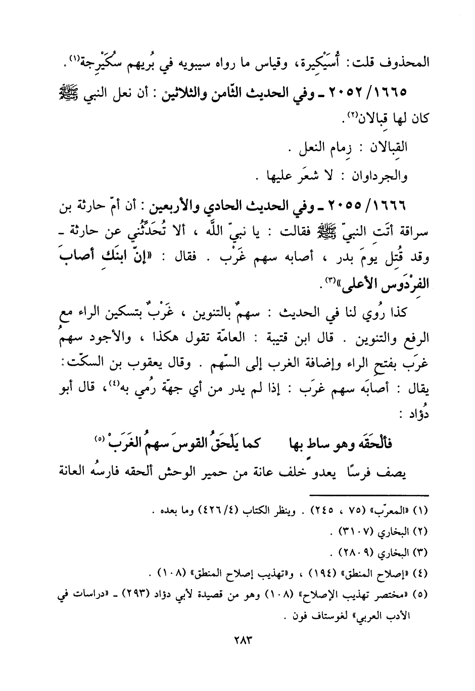 1665 - / 2052 - وَفِي الحَدِيث الثَّامِن وَالثَّلَاثِينَ: أَن نعل النَّبِي صلى الله عَلَيْهِ وَسلم كَانَ لَهَا قبالان.